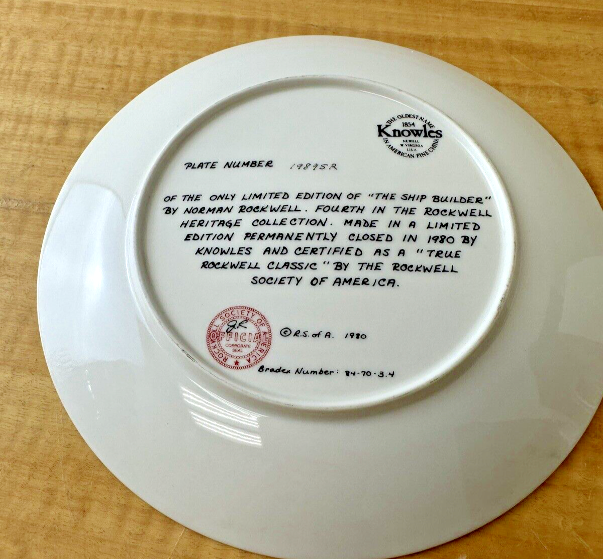 Knowles 1980 Plate ~ Norman Rockwell: The Ship Builder ~ Bradex 84-70-3.4