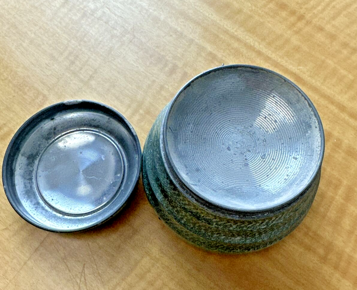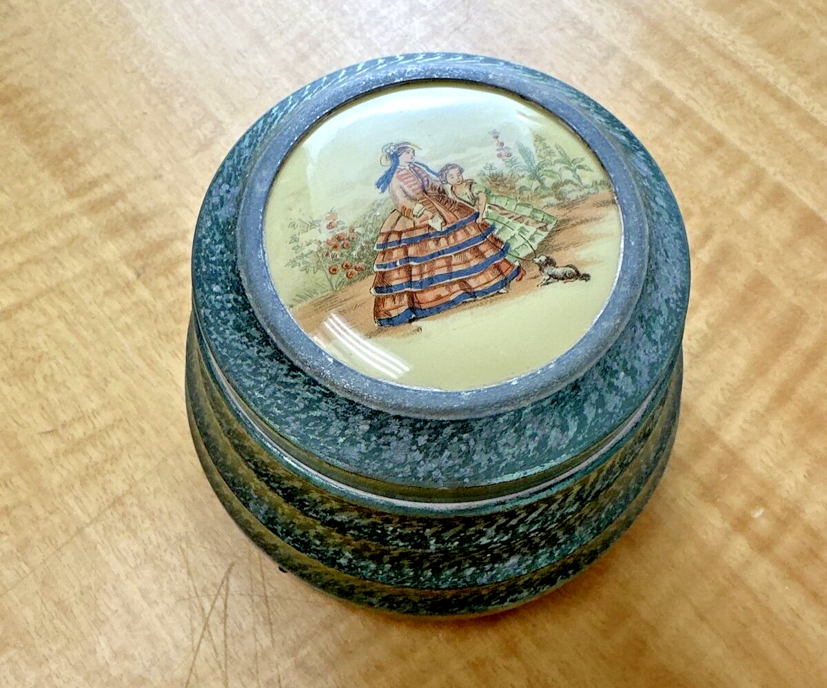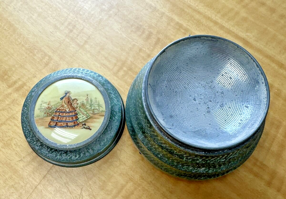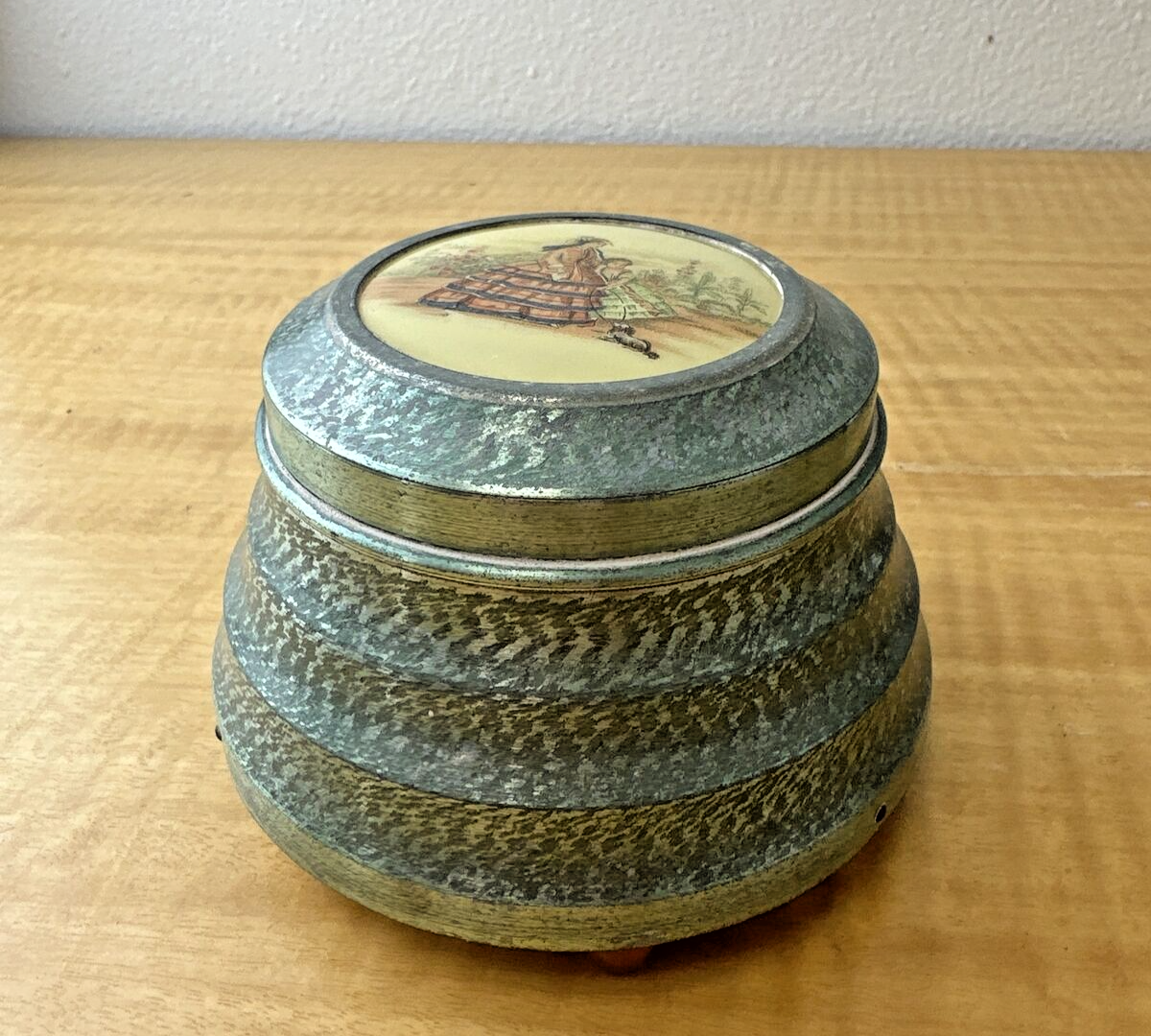 Lador Swiss Musical Powder Puff Box Blue Aluminum c1930s 40s Victorian - Works