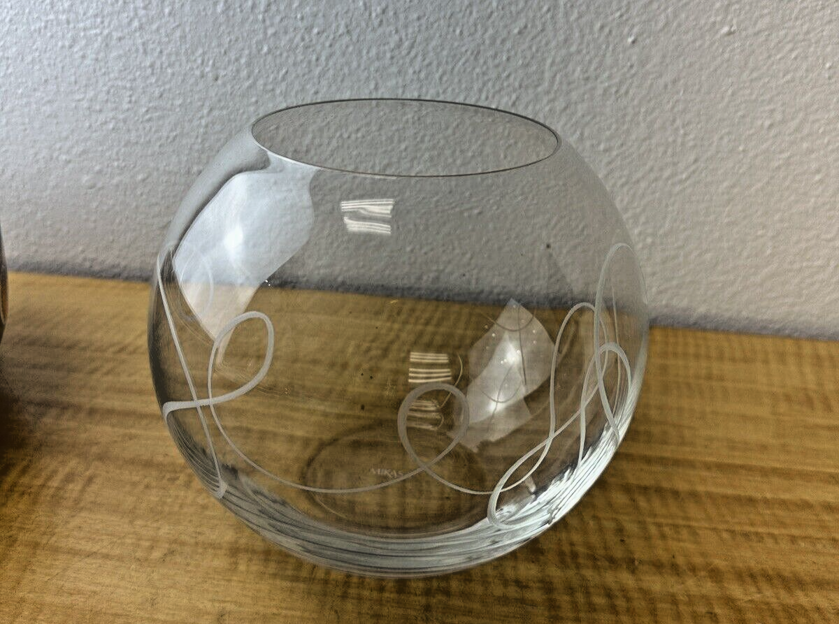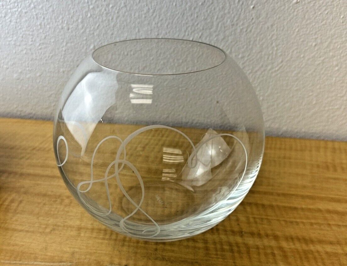 Large Decorative Etched Heart GlassVase Oval Fish Bowl Vessel - Mikasa