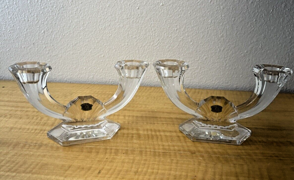 Set of 2 - Val St Lambert IMPERIAL Double Light Candlestick - In Original Box