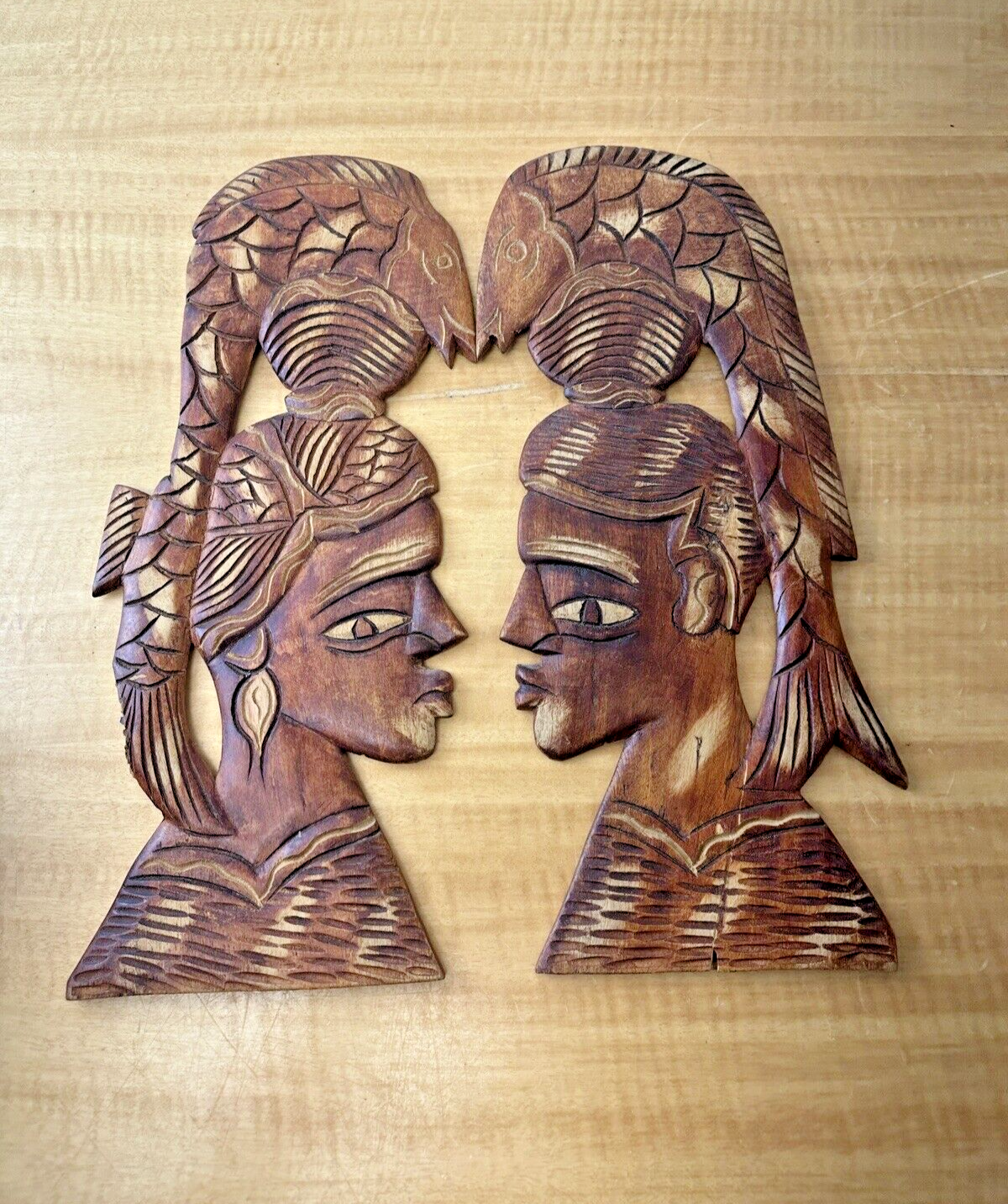 Wood Carving Woman & Man African Haiti Jamacian Hand Carved