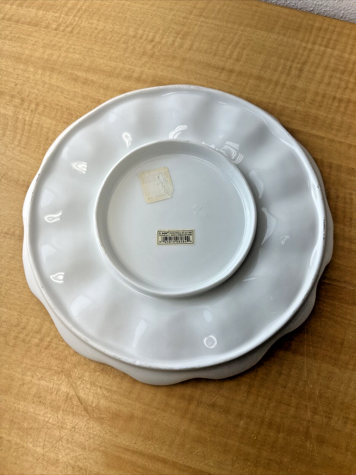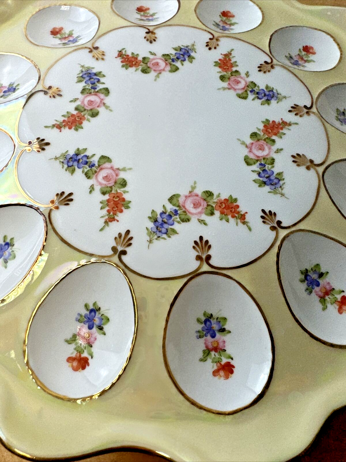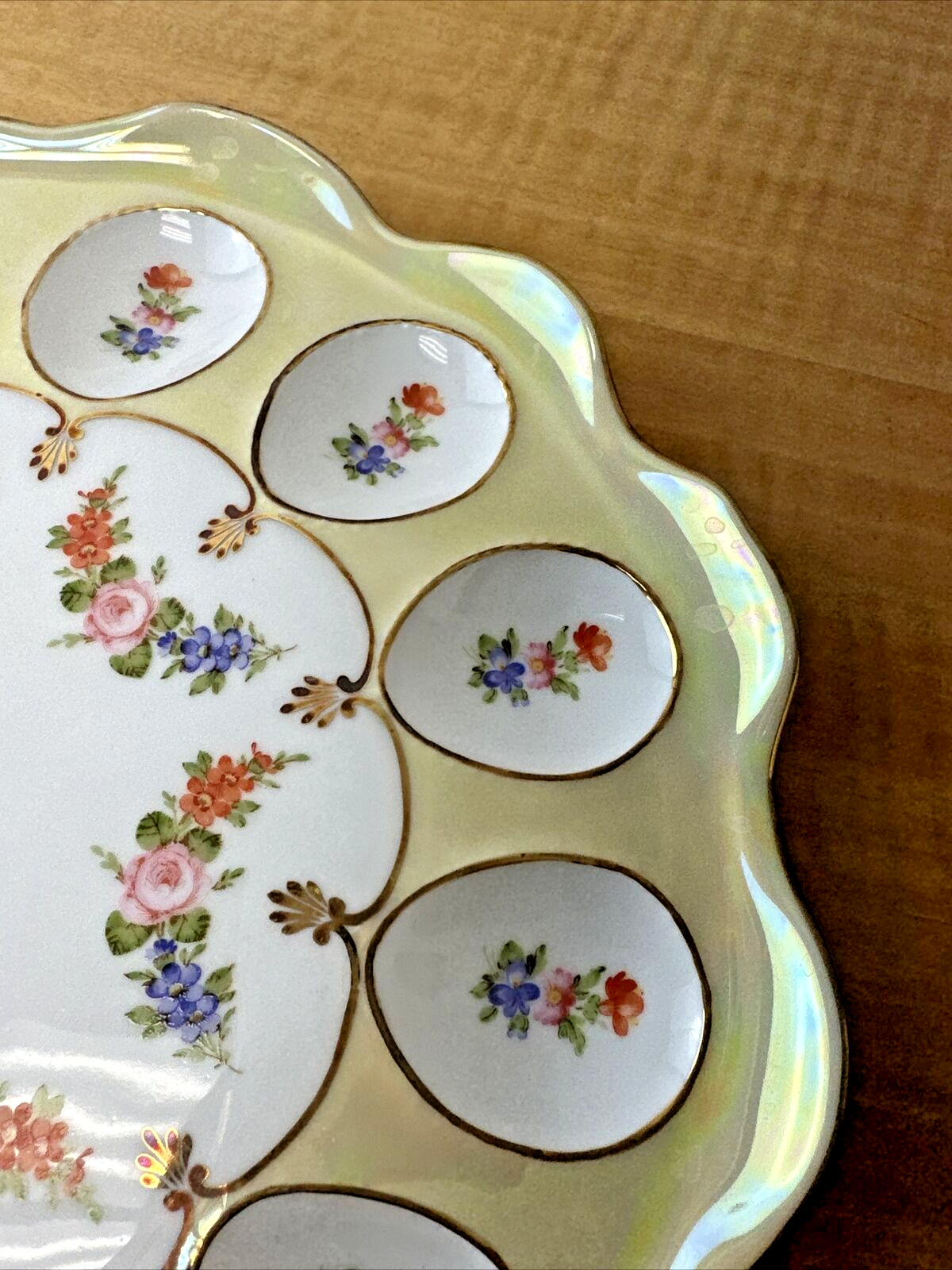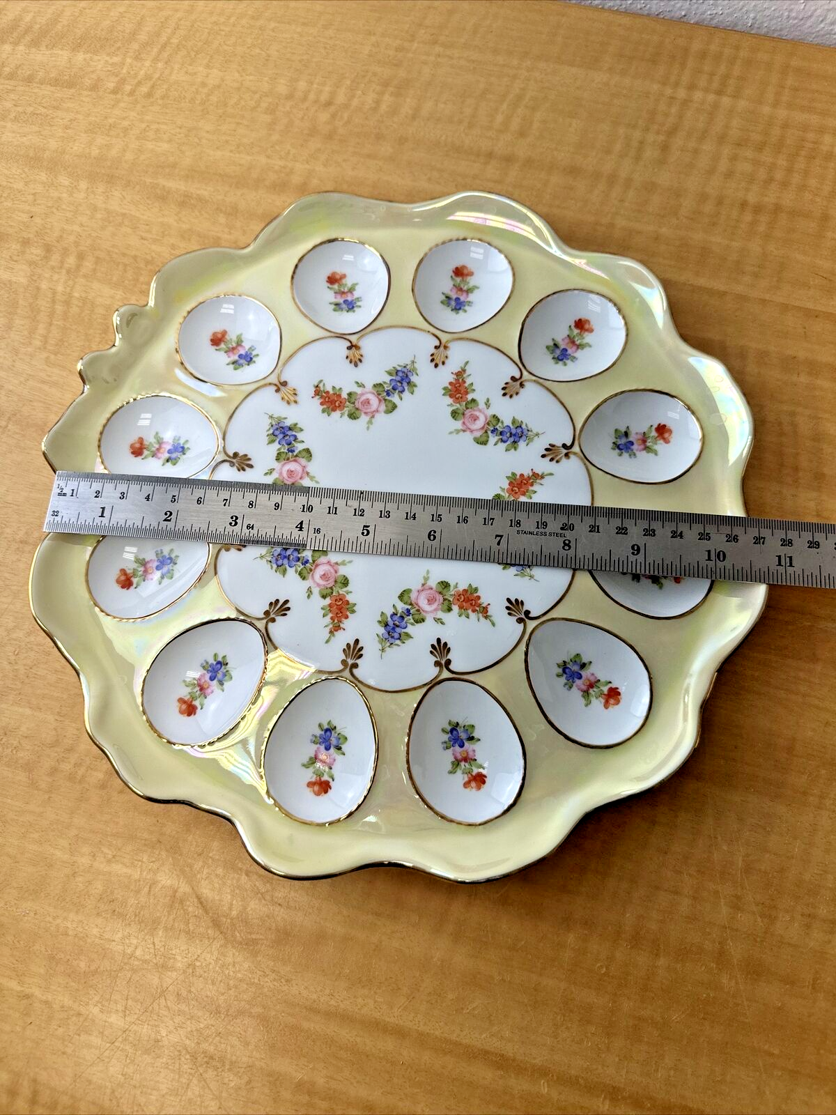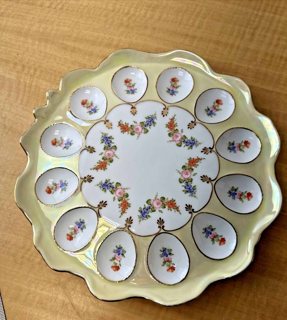 Ganz Deviled Egg Platter Plate Gold Trim Iridescent Yellow Flowers Scalloped