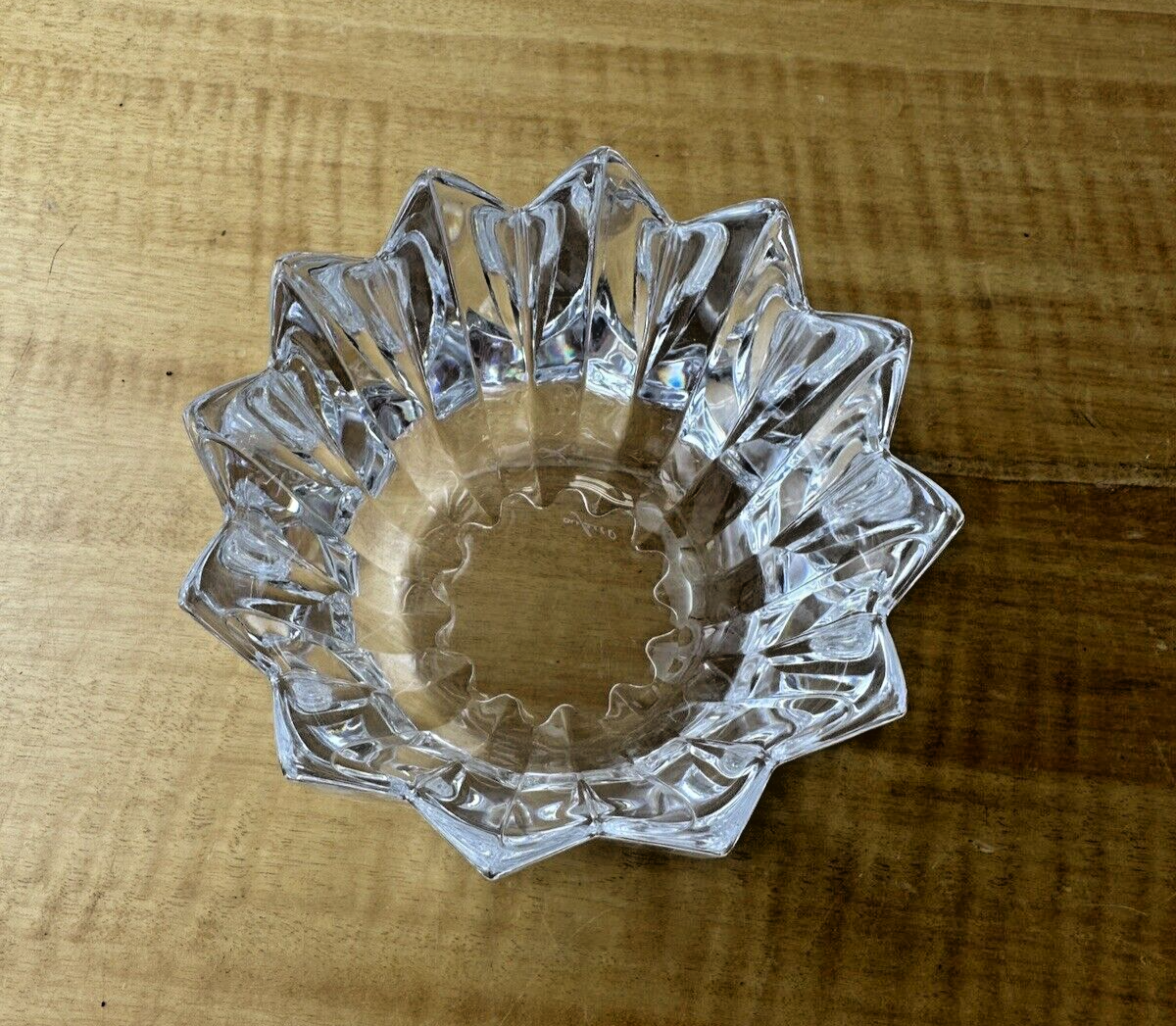 Vintage Hand Signed Lead Swedish Crystal Glass Pointed Candy Bowl Dish 4.75"