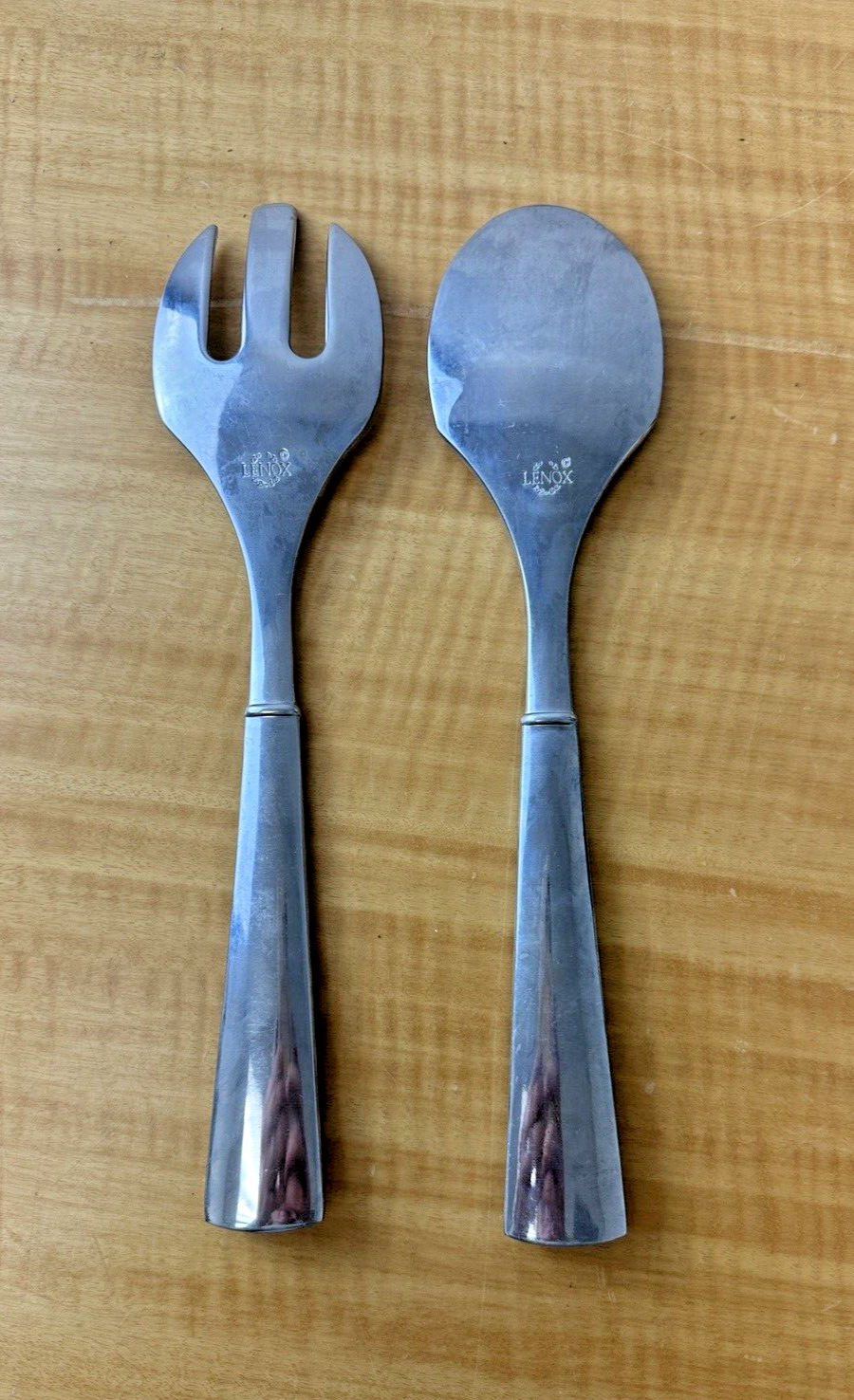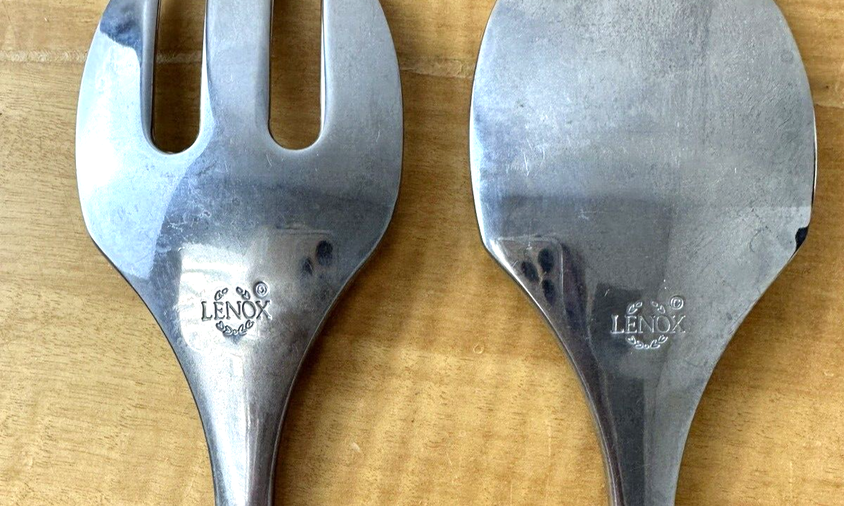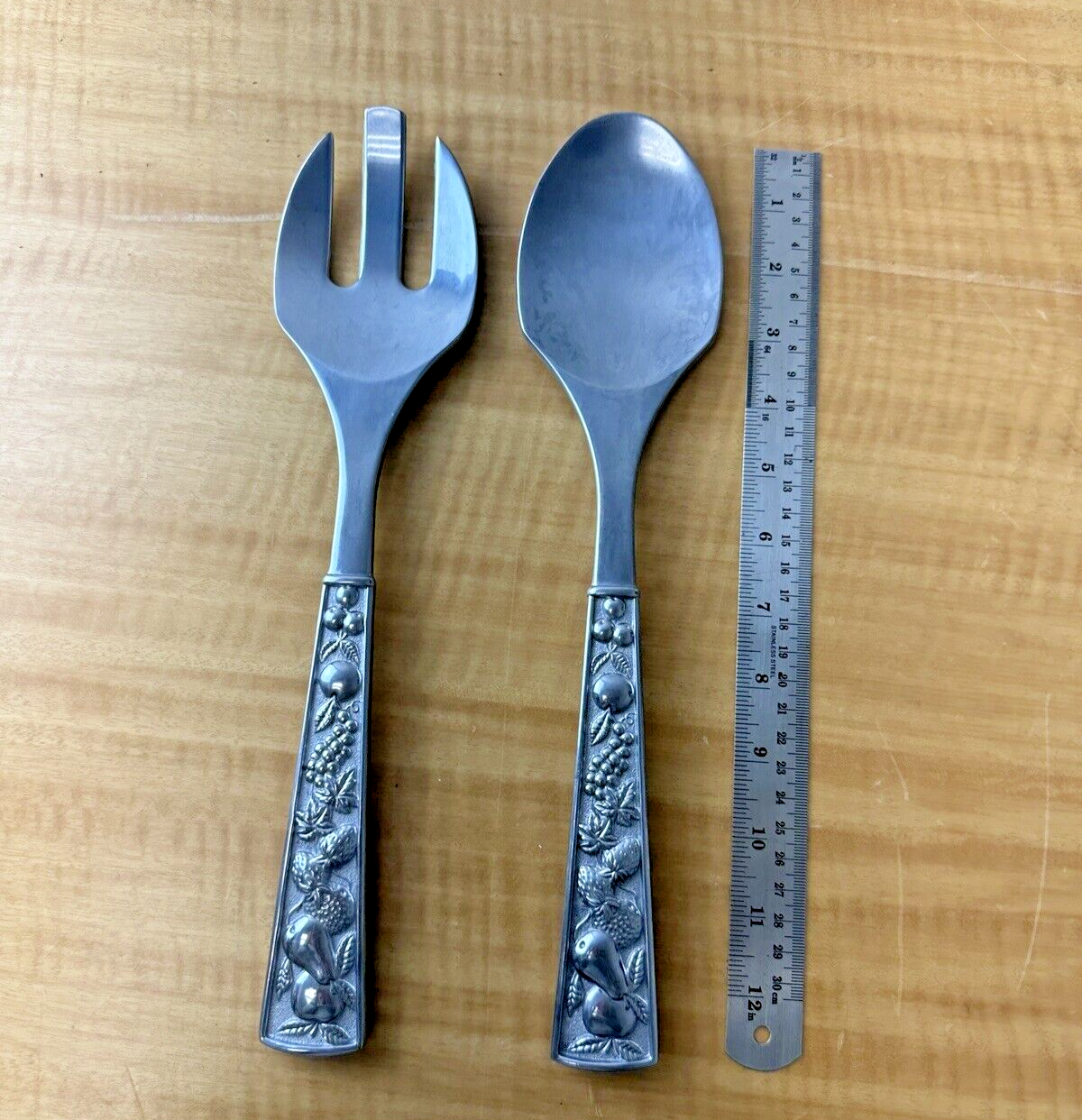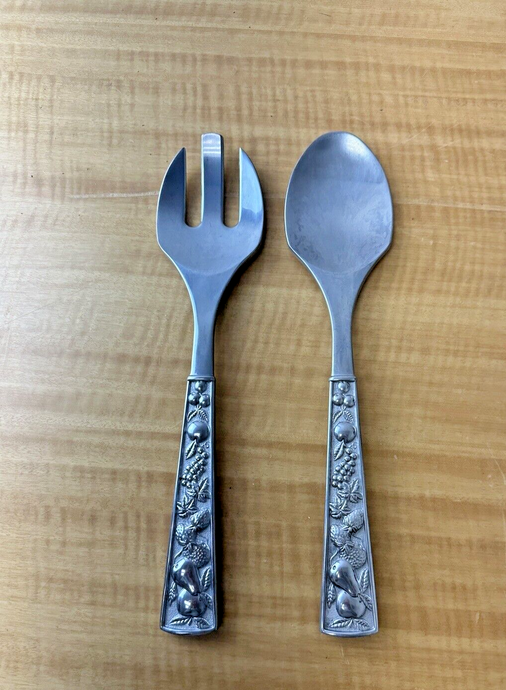 Lenox ~ SALAD SERVING SET ~ Stainless 13" FORK and SPOON ~ Fruit Pattern ~ Heavy