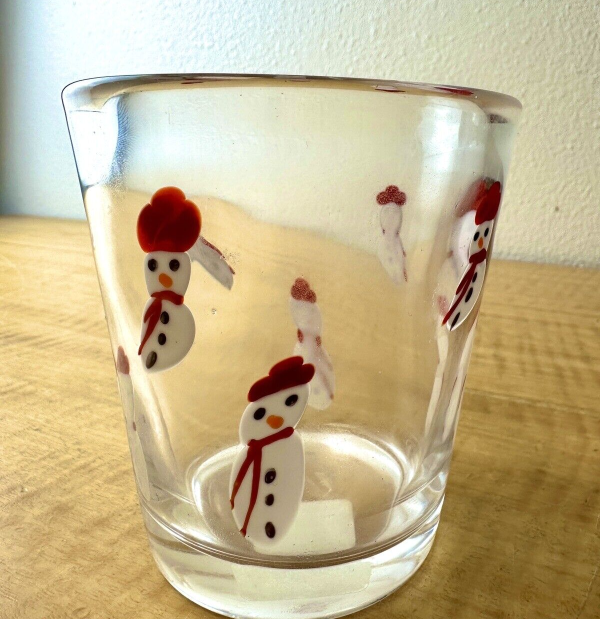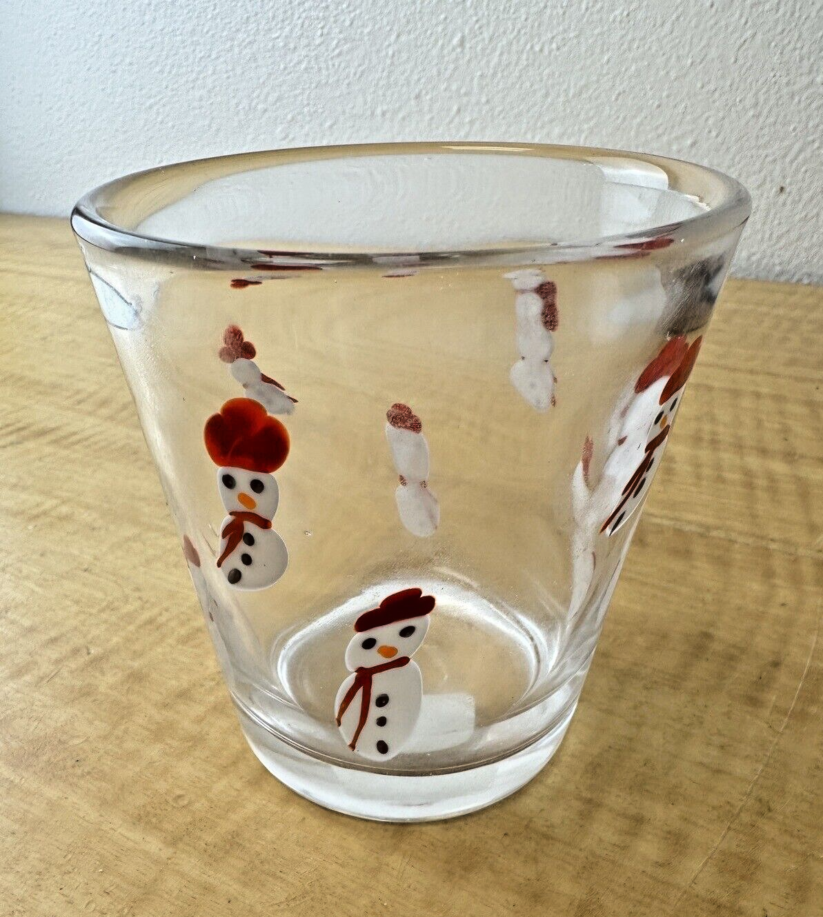 Charming Snowmen on Clear Highball Glasses 8 oz Festive Bar Ware
