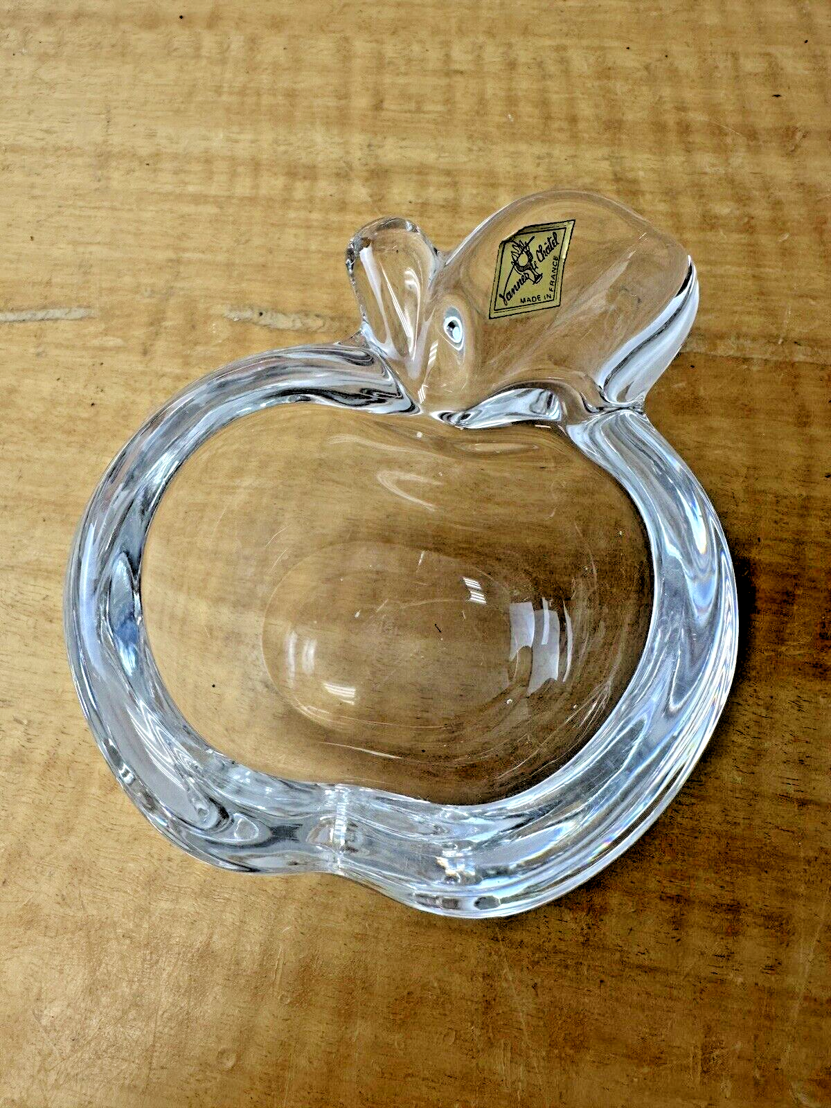 Vintage Cristallin Art Vannes le Chatel France Crystal Apple Trinket Dish