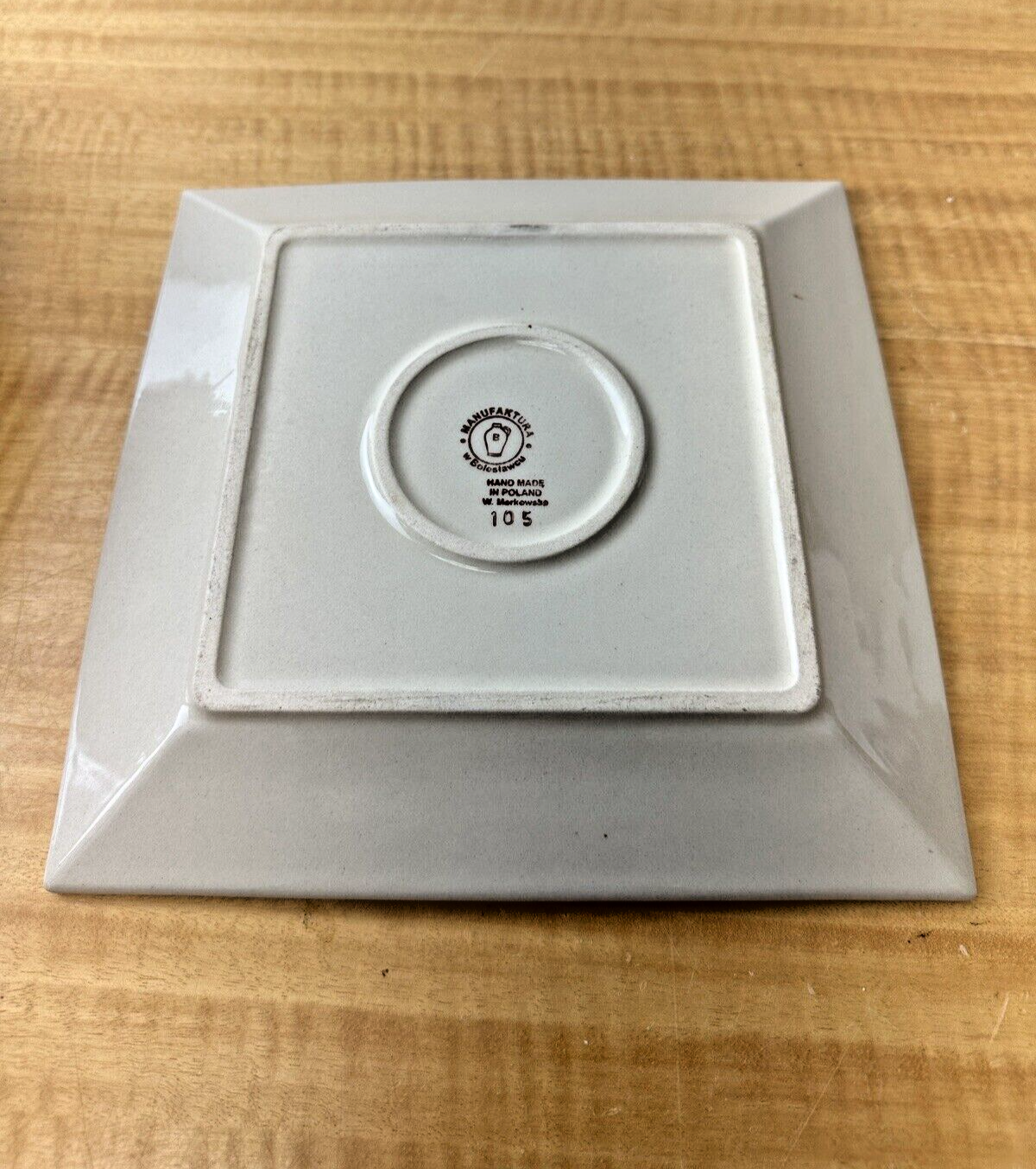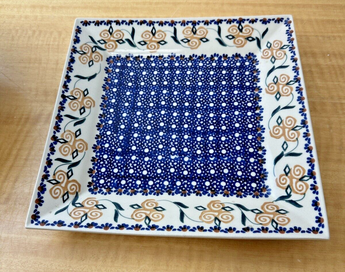 Blue White Orange Pottery Boleslawcu / Boleslawiec Poland Tray Plate 9"x 9"