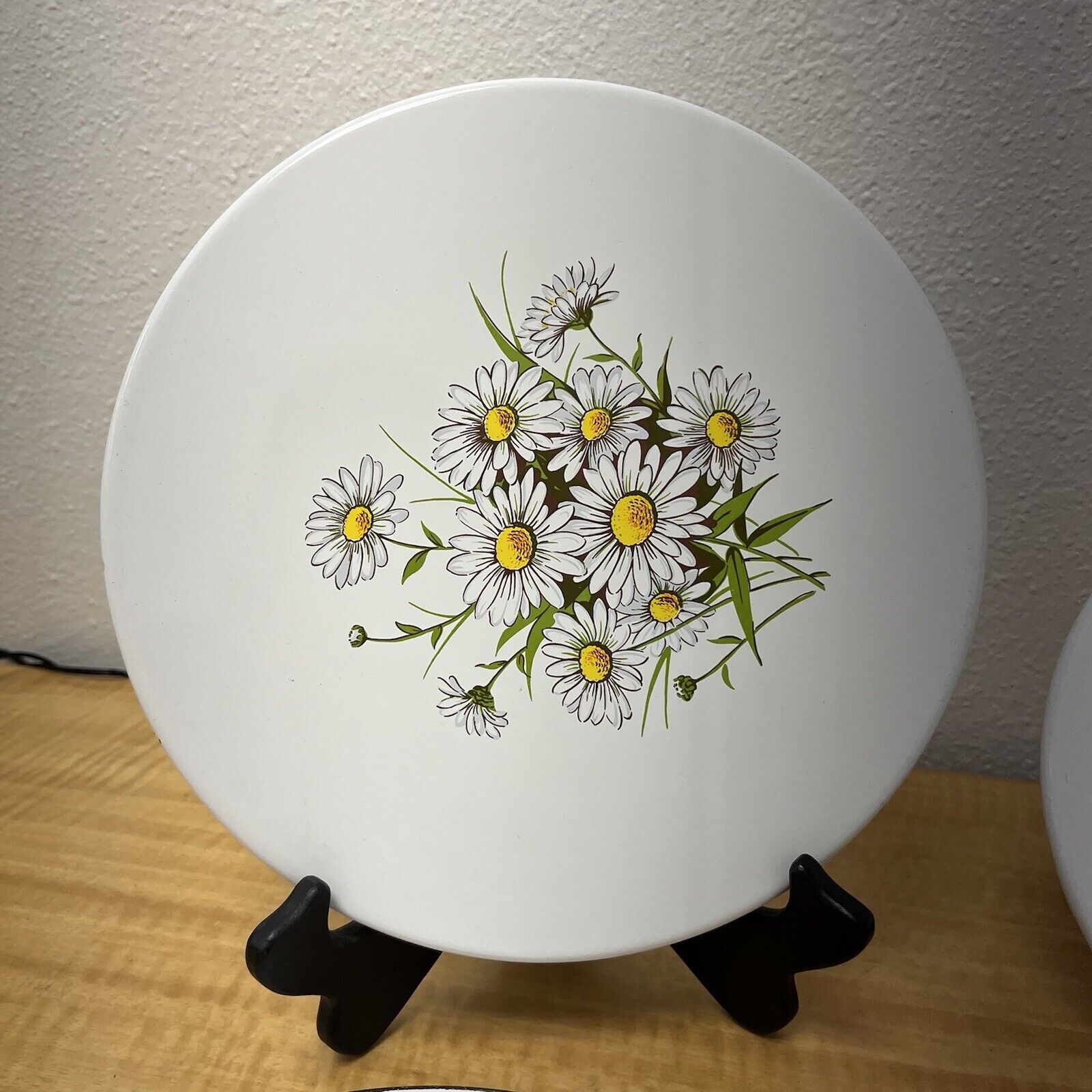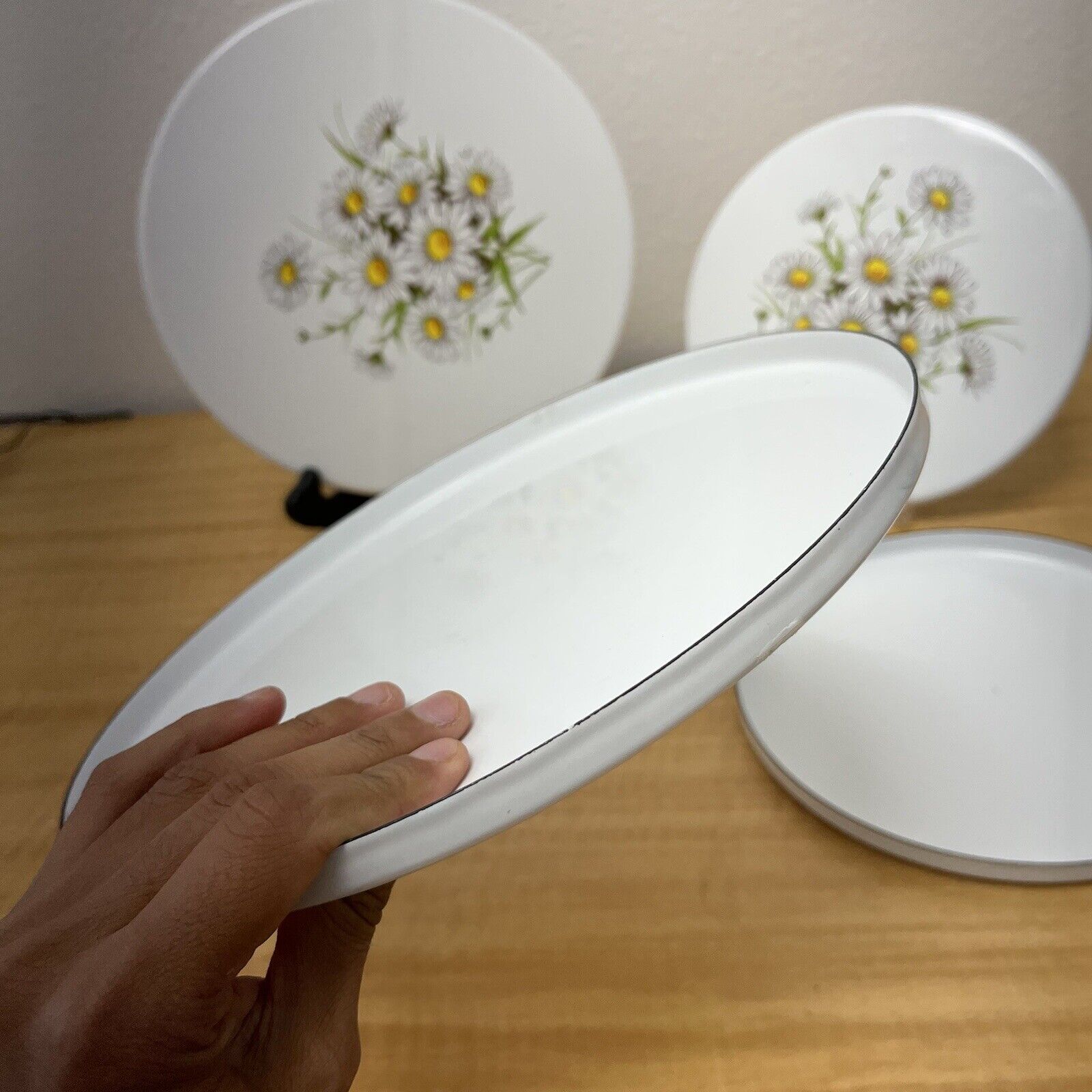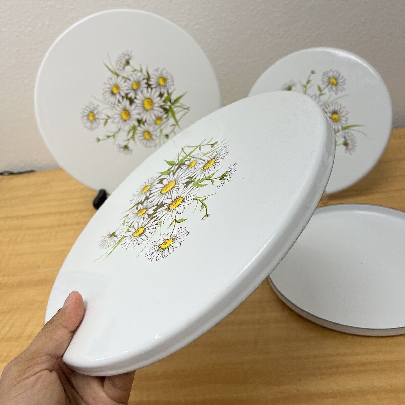 Set of 4 - Vintage Metallic Picnic Plates Floral Daisy Flowers Spring White