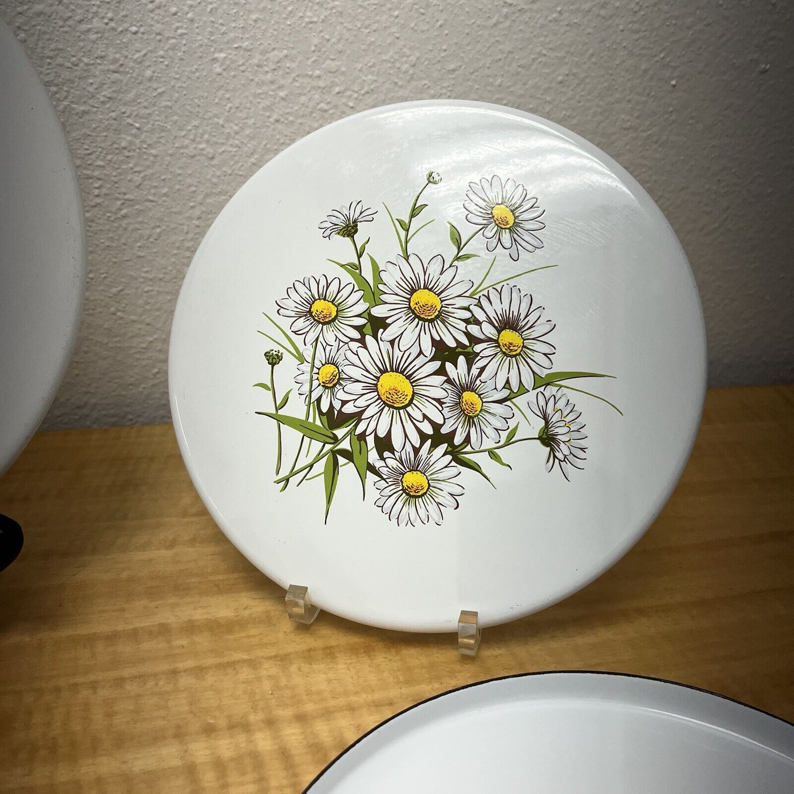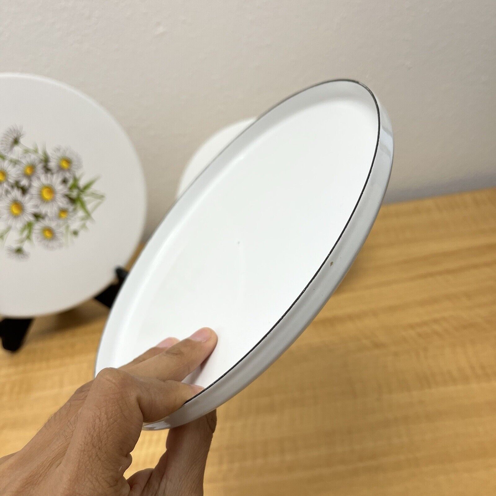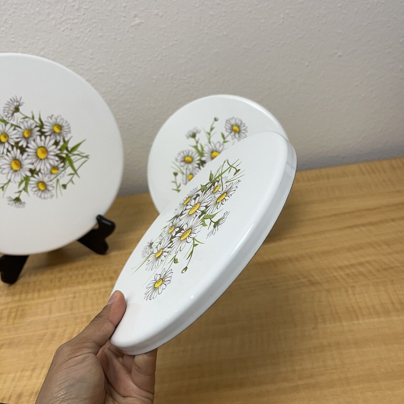 Set of 4 - Vintage Metallic Picnic Plates Floral Daisy Flowers Spring White