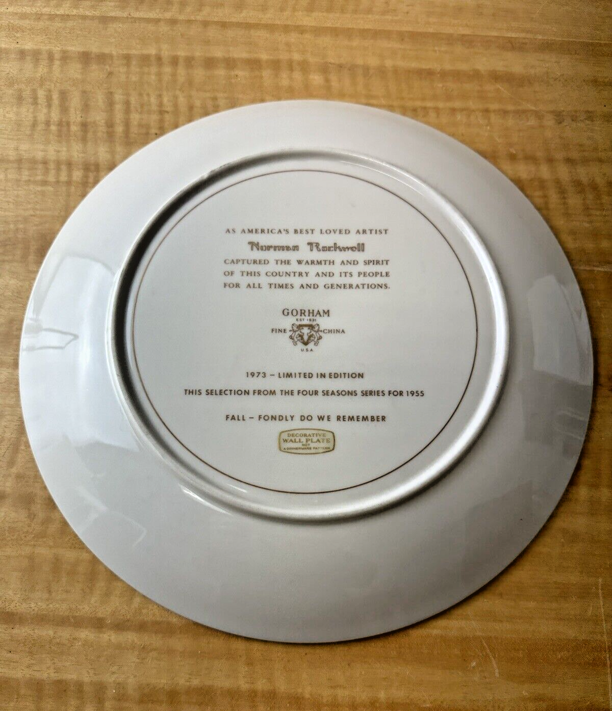 Gorham Norman Rockwell 1973 Collector Plate Fall - Fondly Do we Remember 10 1/2"