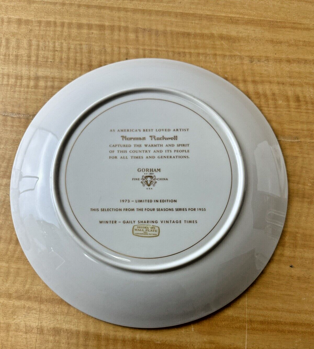 Norman Rockwell Gorham 1973 Winter Gaily Sharing Vintage Times Plate 10.5" VGC