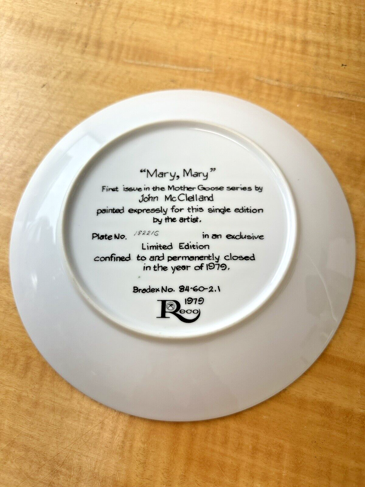 Mary Mary Collector Plate 1979 by John McClellan Mother Goose Series