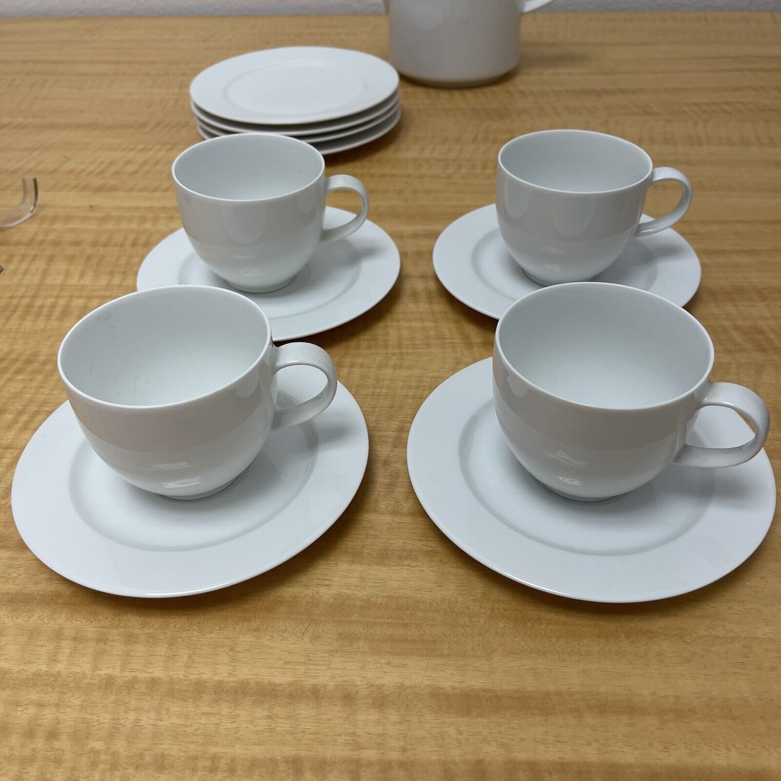 Arzberg Germany White Porcelain Coffee Tea Cups Dessert Plates Teapot - Set of 4