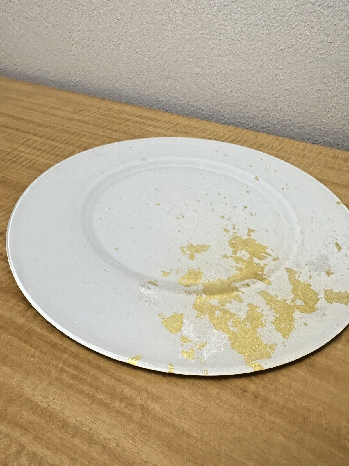 SYOSAKU JAPANESE URUSHI GLASS CHARGER PLATE 13.9-INCH PURE WHITE WITH GOLD LEAF