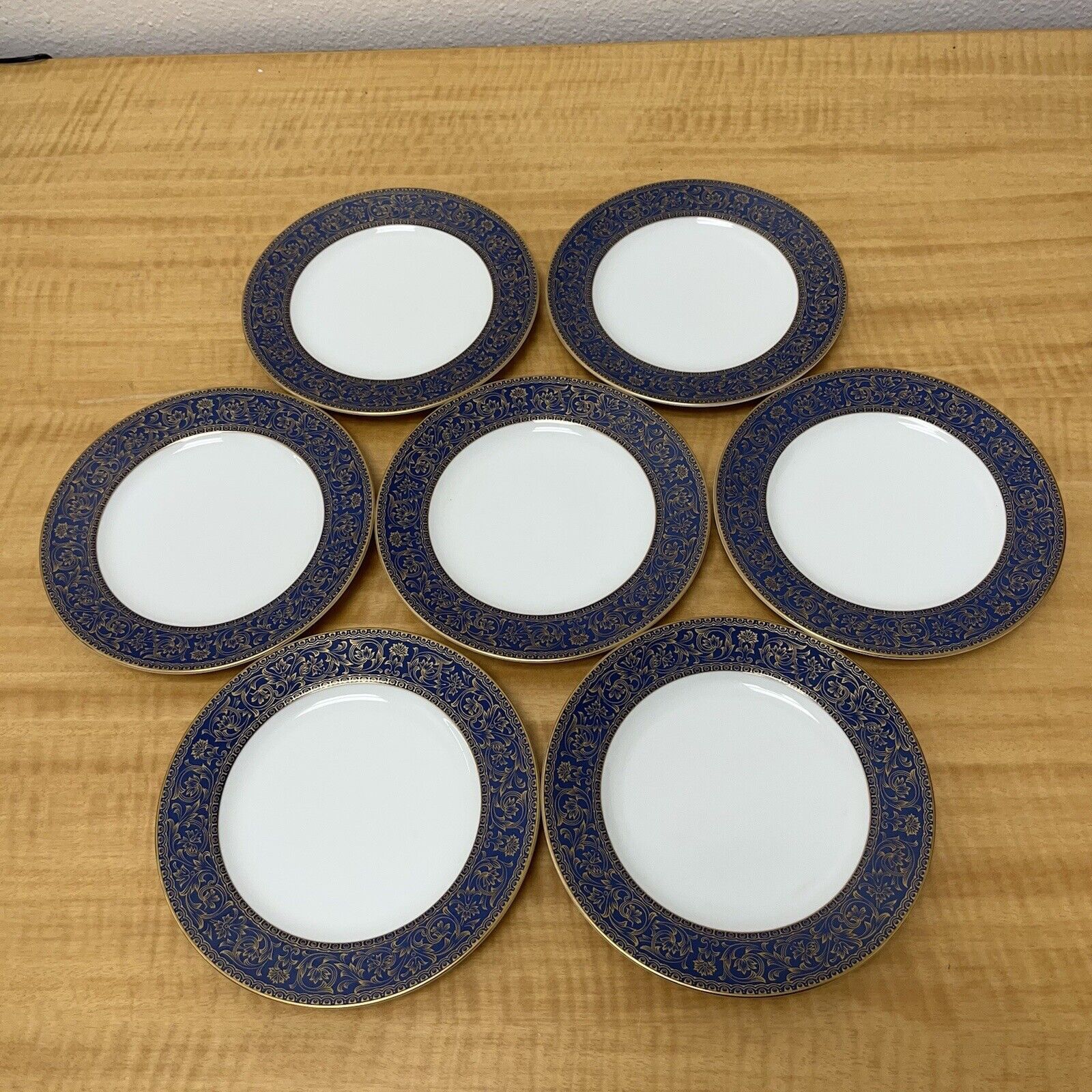 Set of 7 - Sango China Aristocrat Cobalt Gold Bread Butter Dessert Plates 6.75"