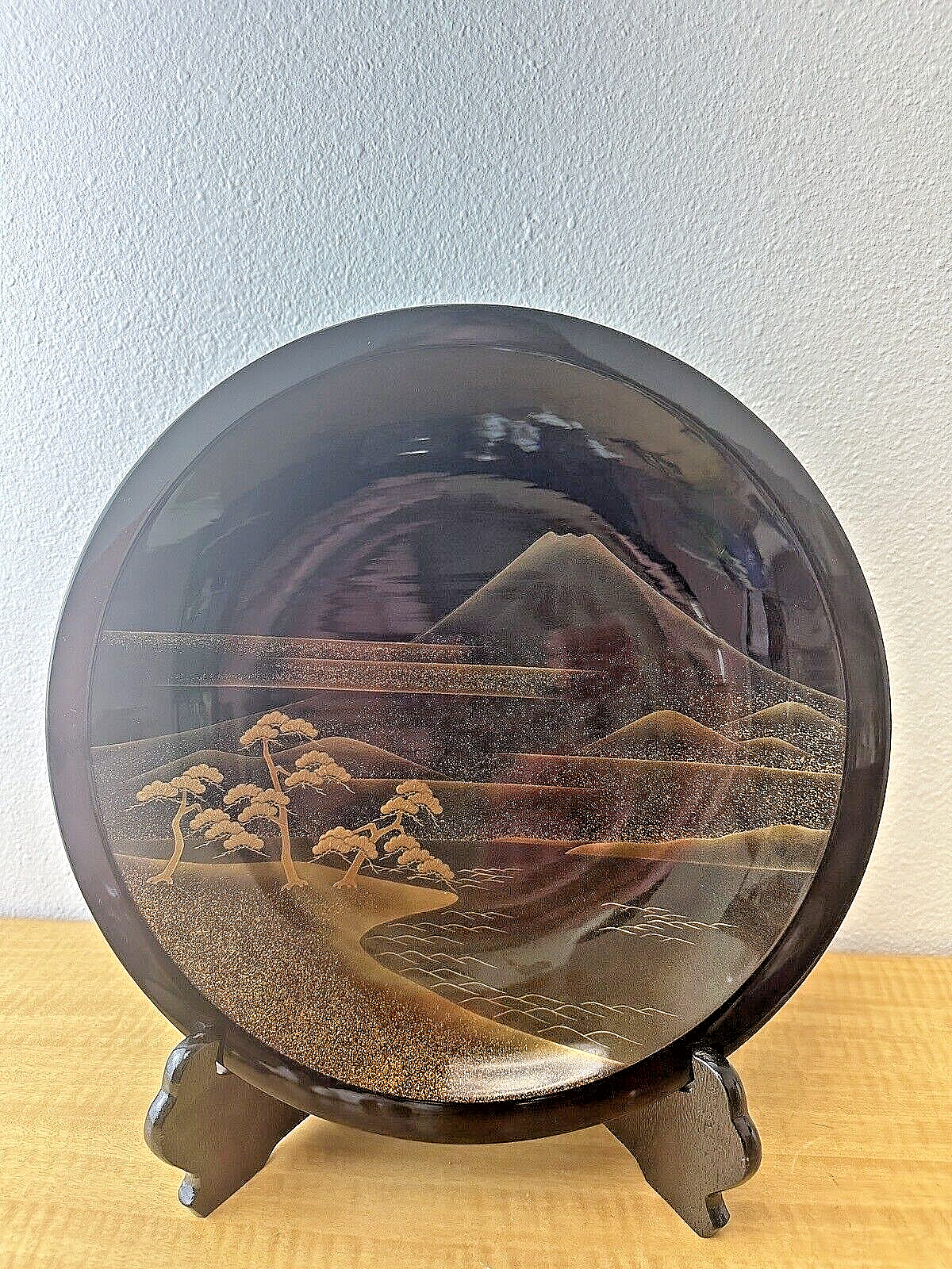 Vintage Japanese Wooden Wajima Lacquerware Kashiki Dessert Plate Black