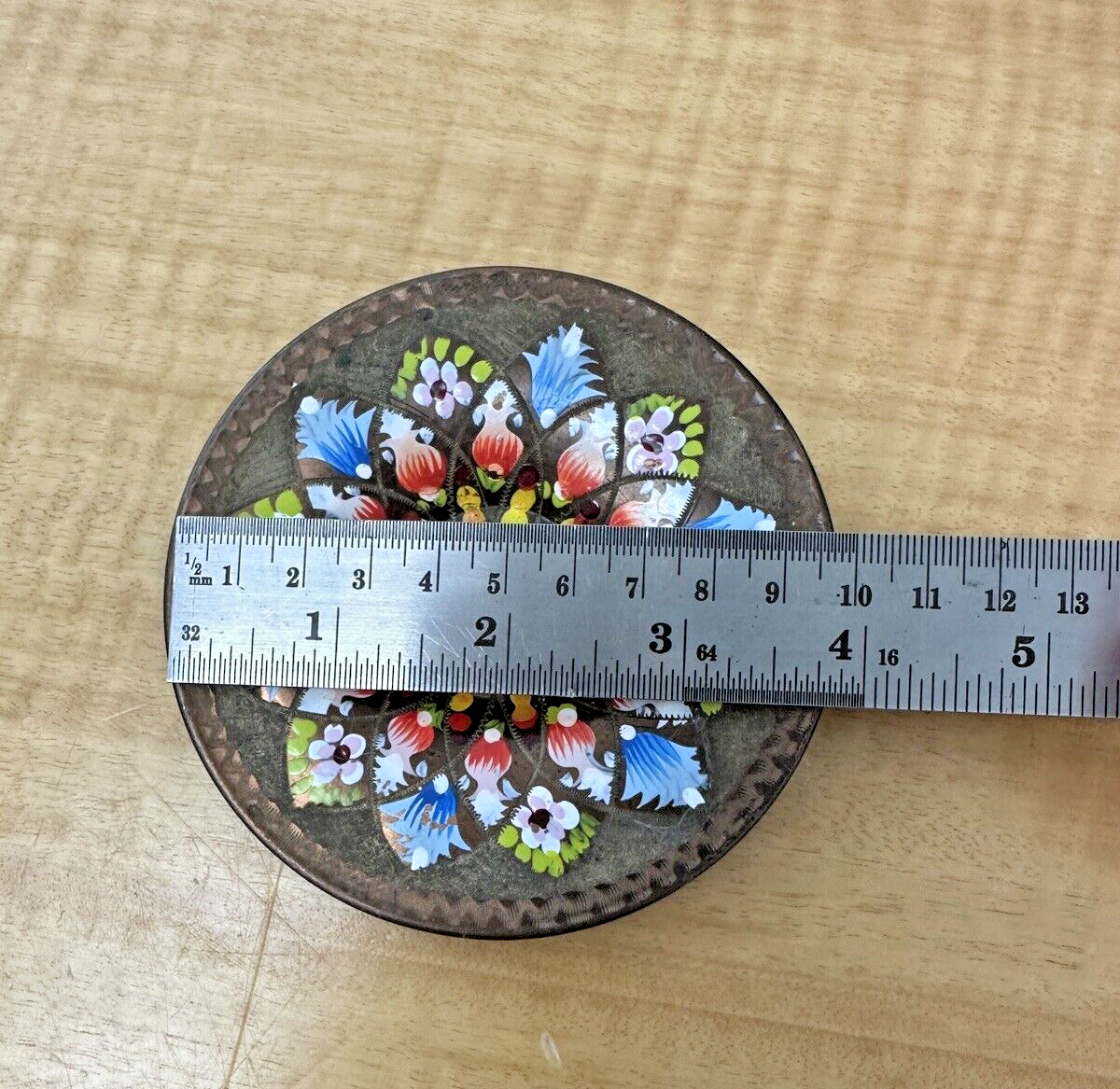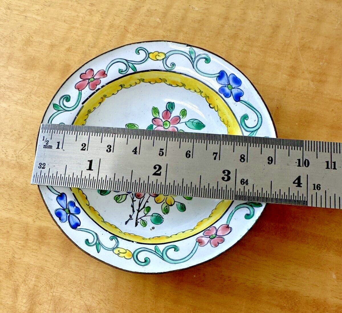 Metal Painted Blue Vintage Trinket Plate with White Flowers, 3.5", Made in China