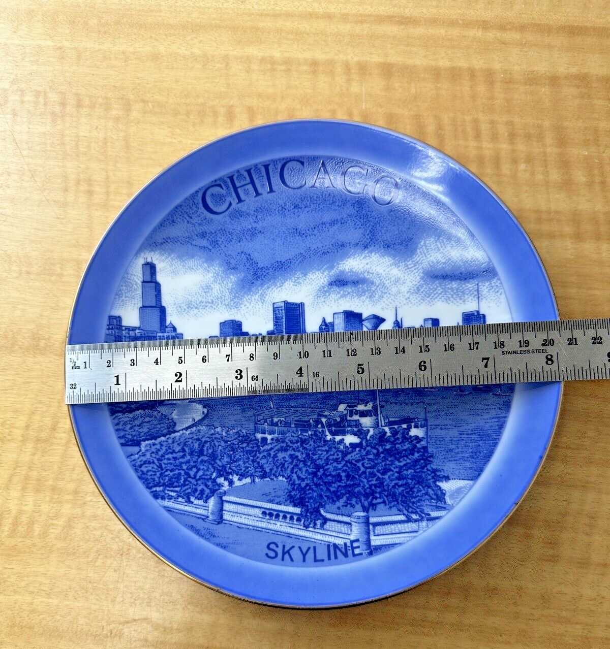 VINTAGE CHICAGO SKYLINE COLLECTOR PLATE~COBALT/ LIGHT BLUE~ALSO MARLYN TOURBOAT