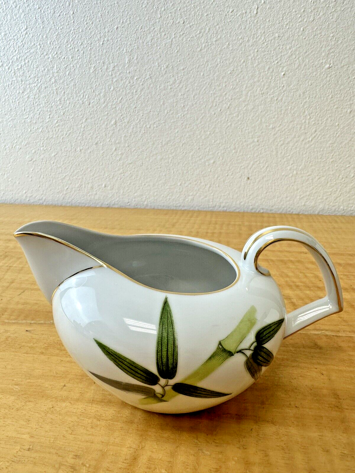 VTG Narumi China SPRING BAMBOO Gravy Boat w Attached Plate Porcelain Japan