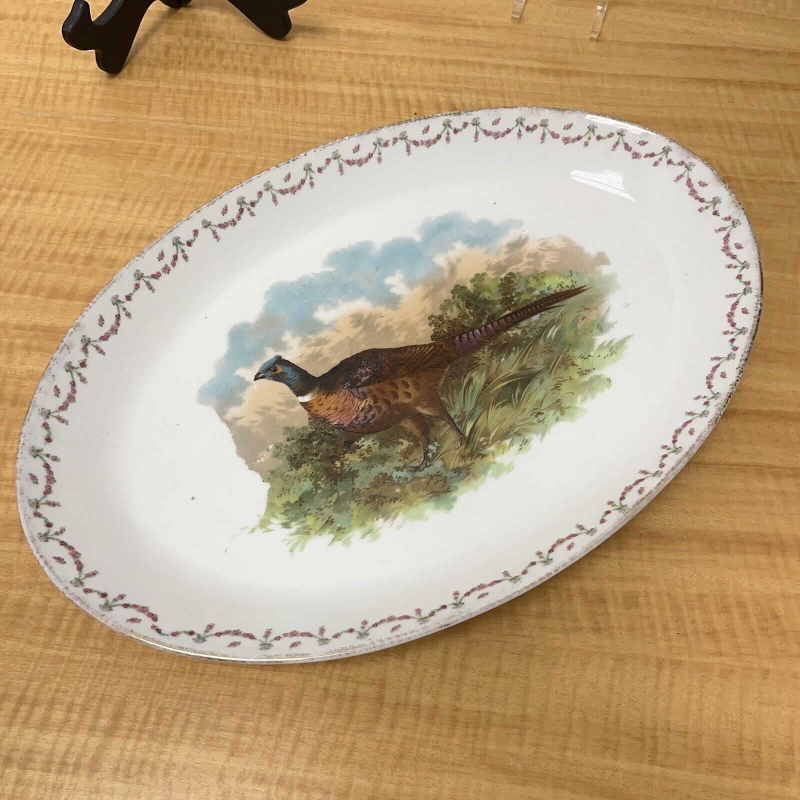 HUB BERNHART AUSTRIA Rose Game Bird Ring Neck Pheasant 18" OVAL SERVING PLATTER