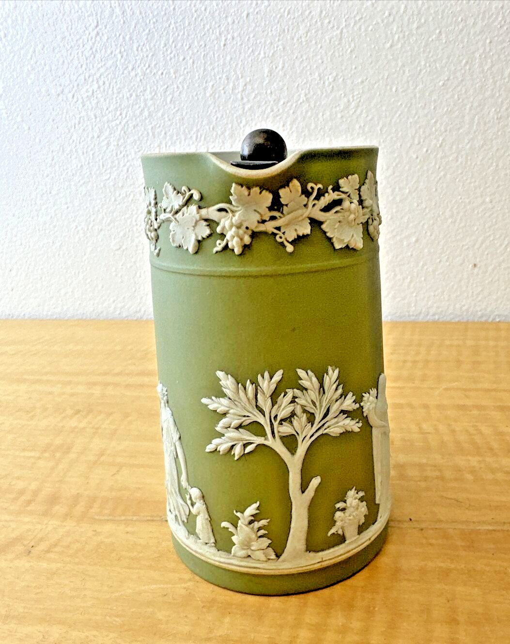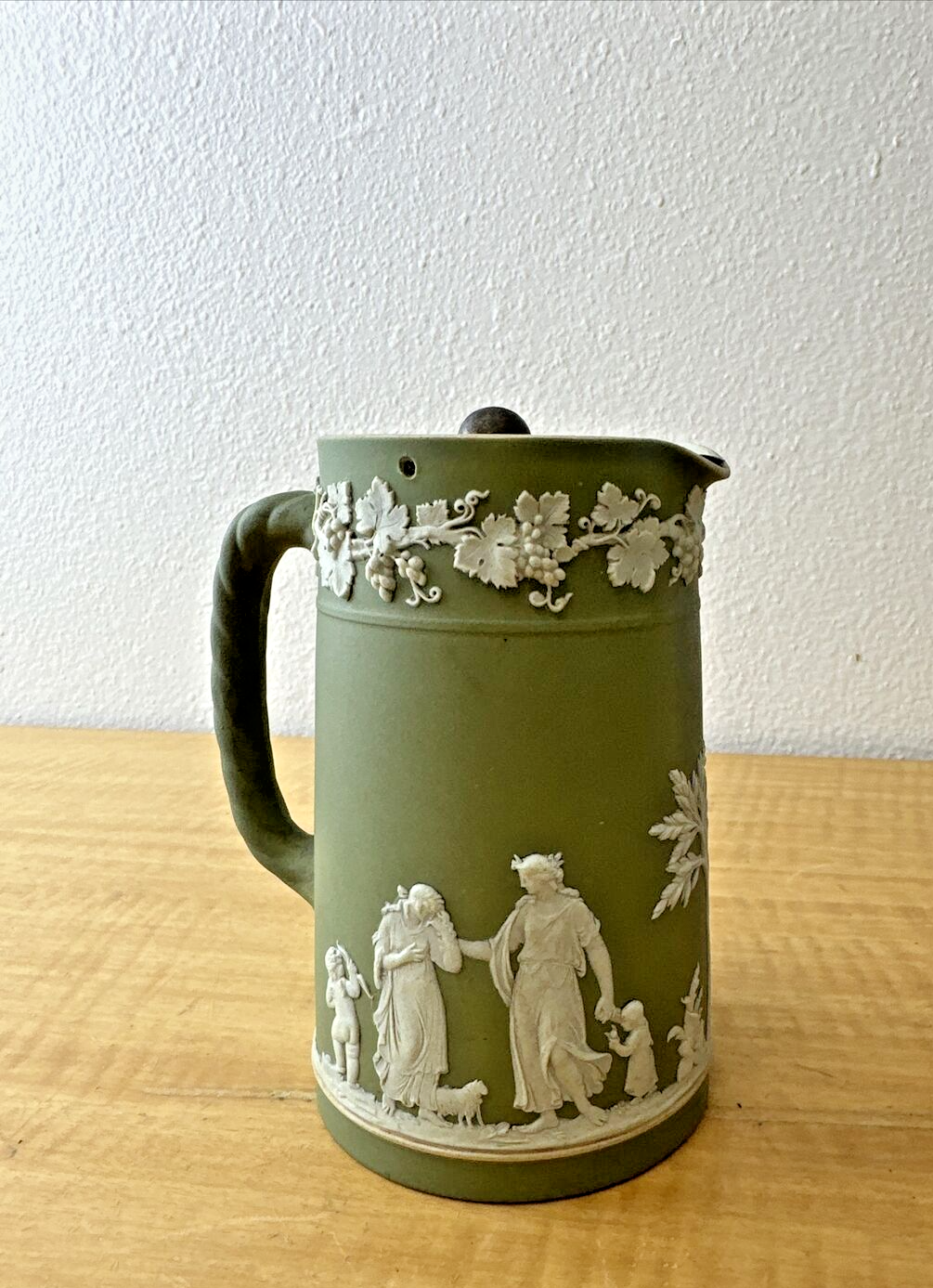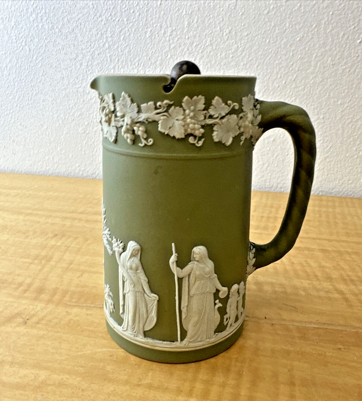 Wedgwood England Jasperware Green Sage Pitcher Jasper with Silver Lid