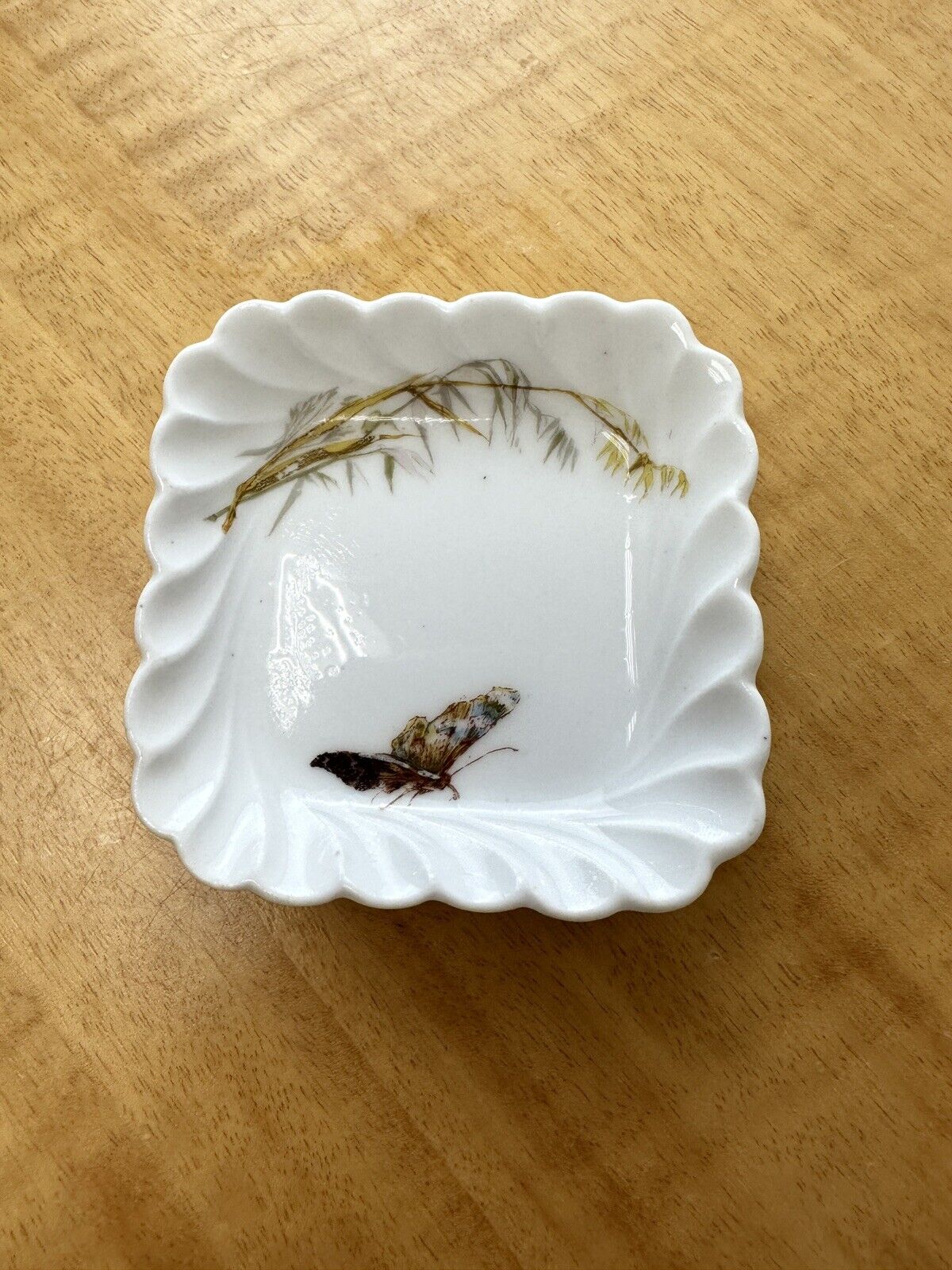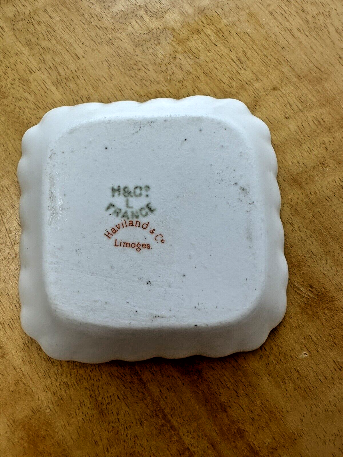 Limoges Mini Porcelain SQUARE Trinket Dish Salt Cellar Floral Gold Trim France