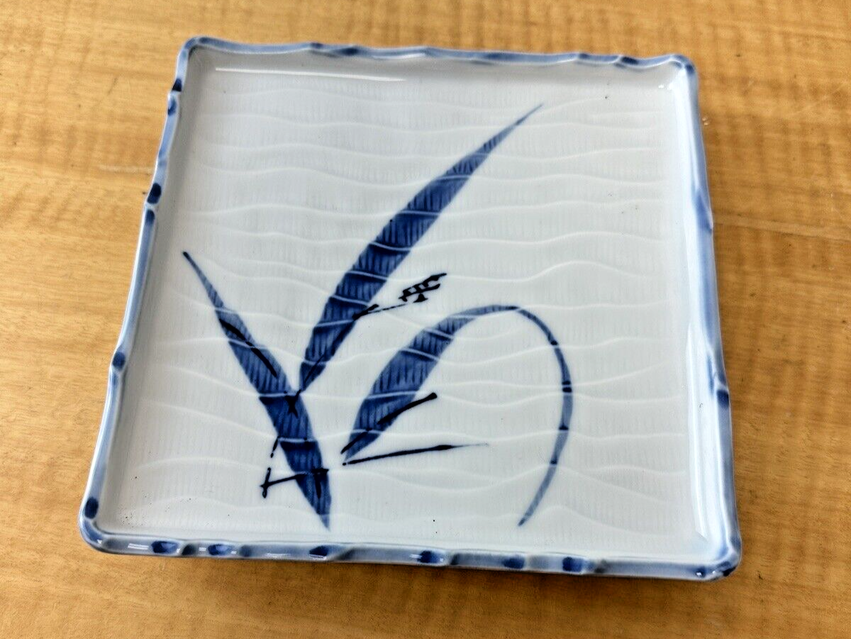 Vintage Japanese Sushi/Serving Shallow Pedestal Dish ~ Hand Painted 6.75"x6.75"