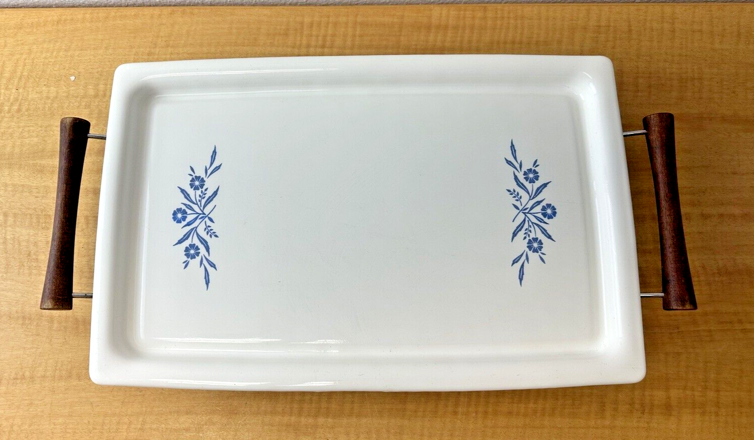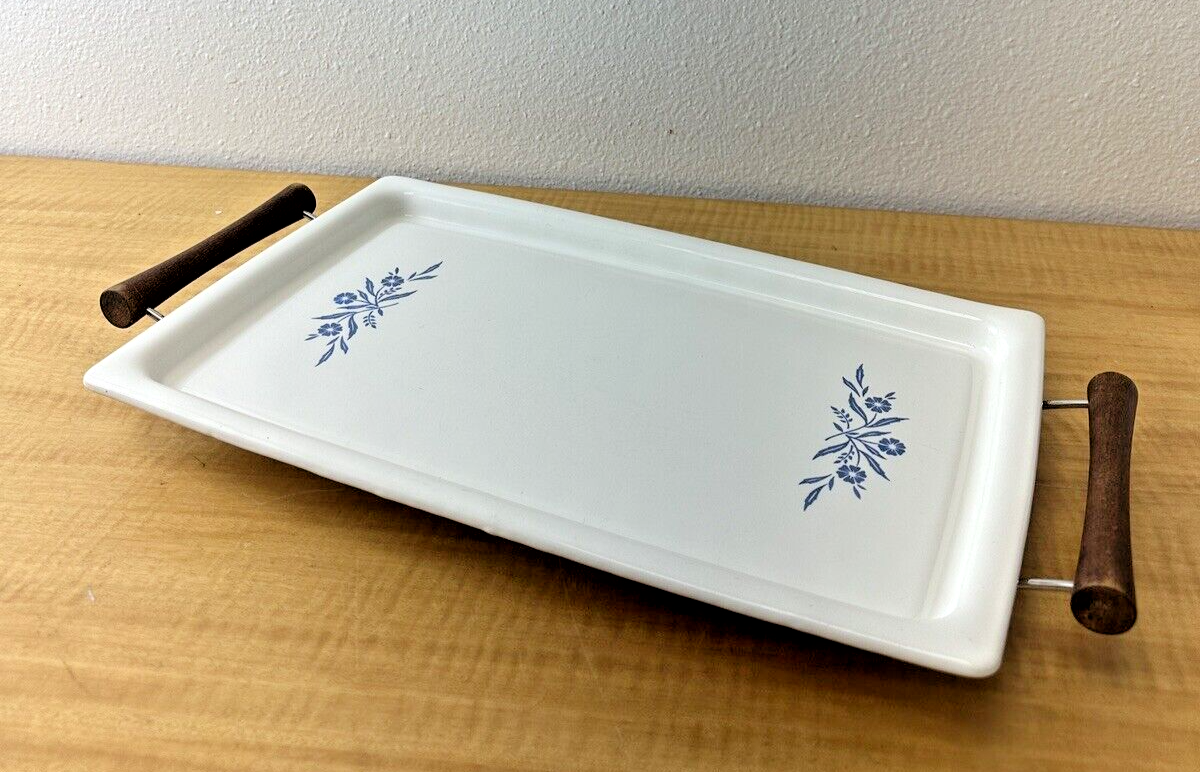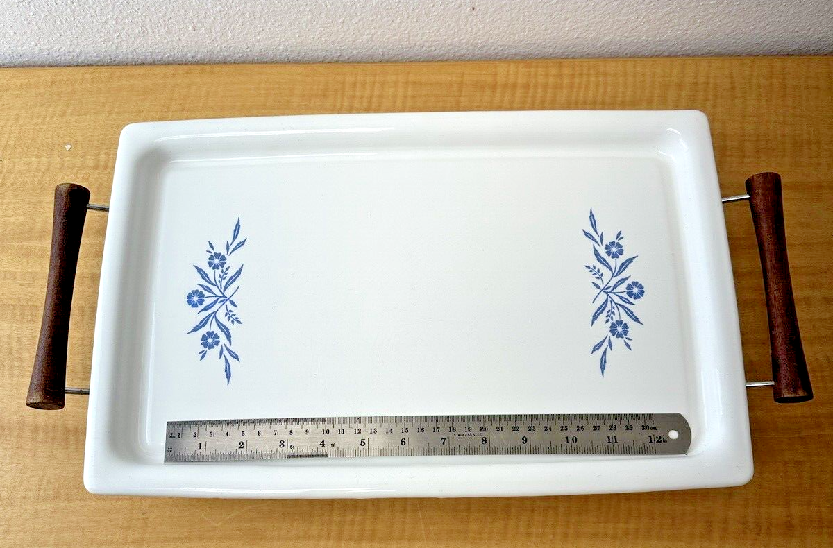 Vtg Corning Ware Blue Cornflower Broil Bake Serving Tray w Metal Holder 16x10”
