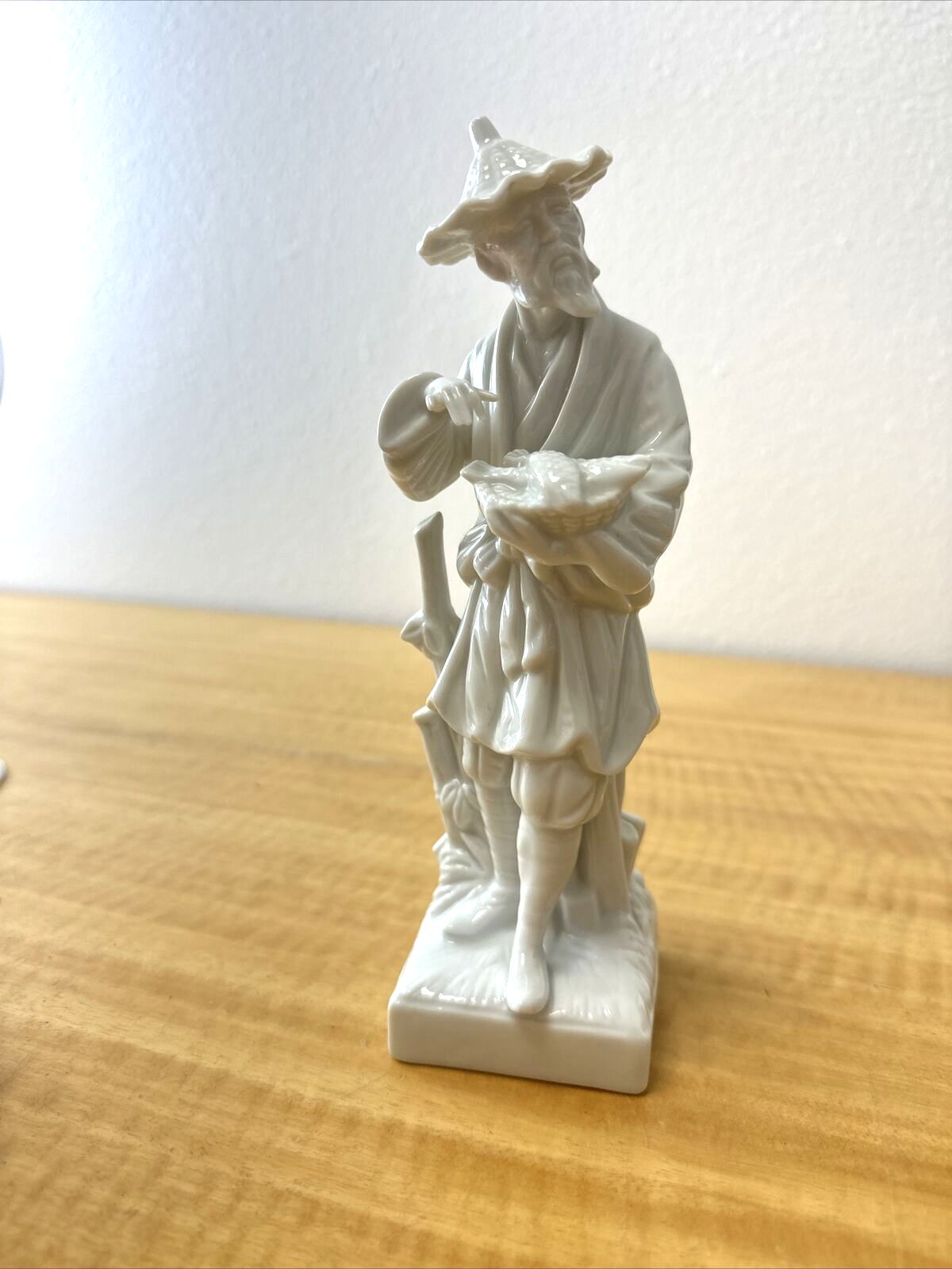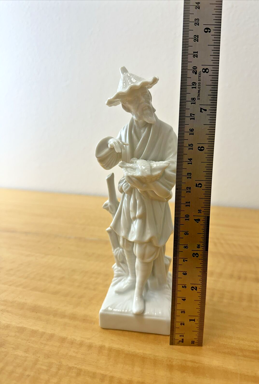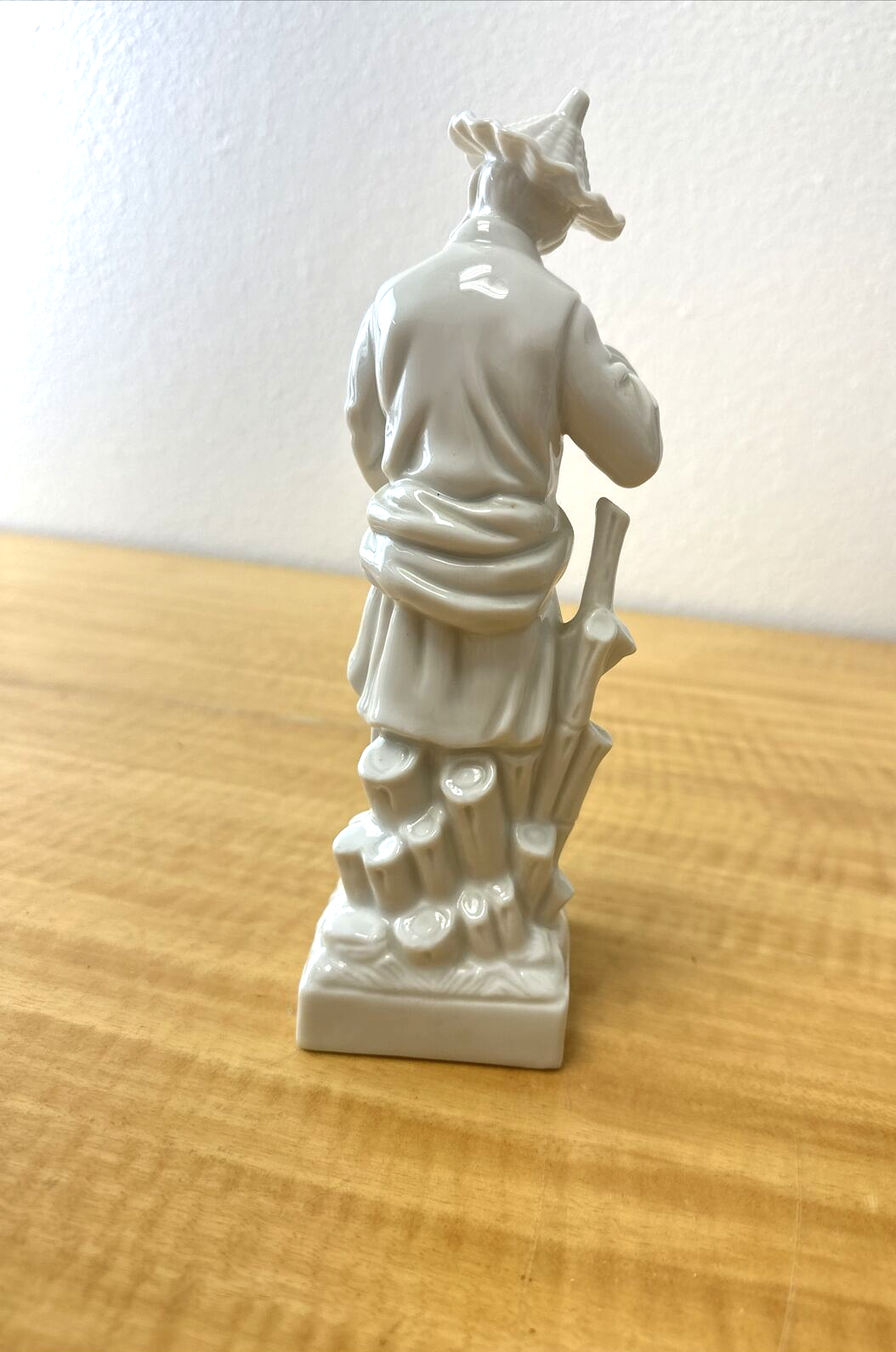 1974 Vintage Fitz & Floyd Oriental Farmer White China Figurine Basket of Fish