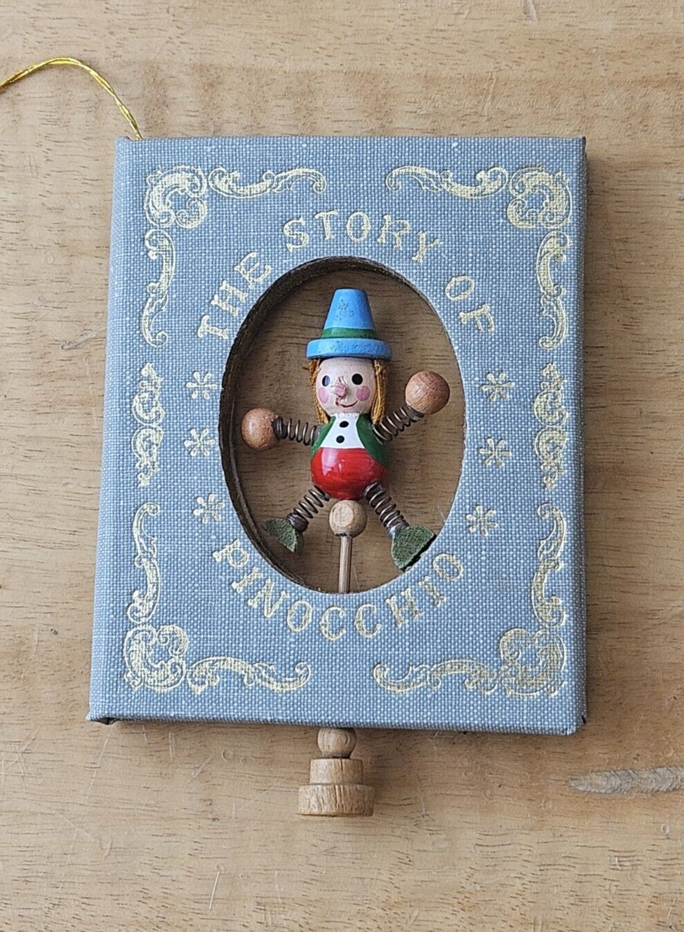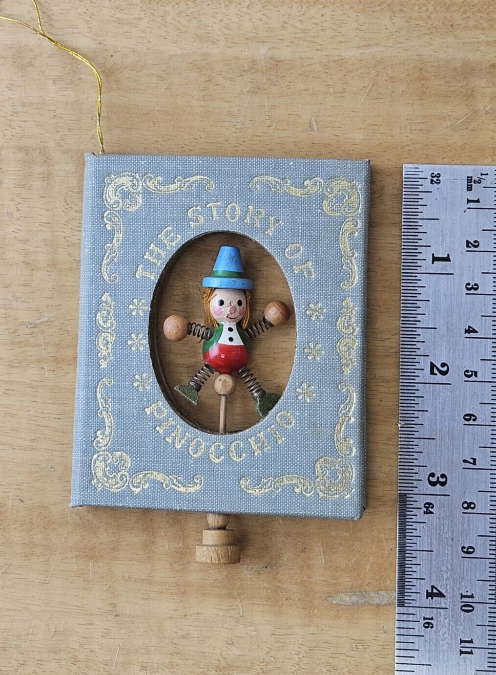 1979 KURT ADLER "The Story of Pinocchio" Book - Rotating wood CHRISTMAS ORNAMENT