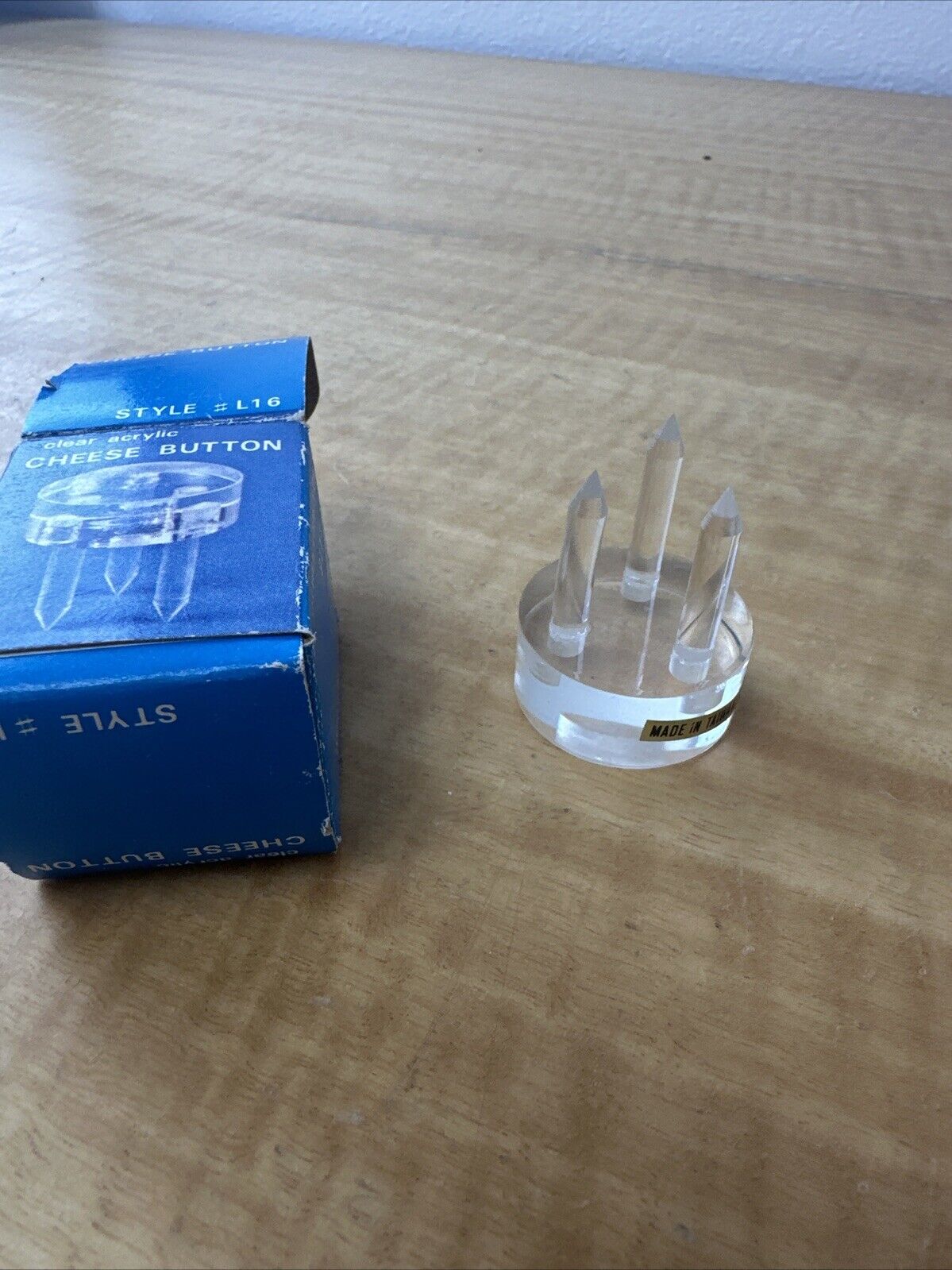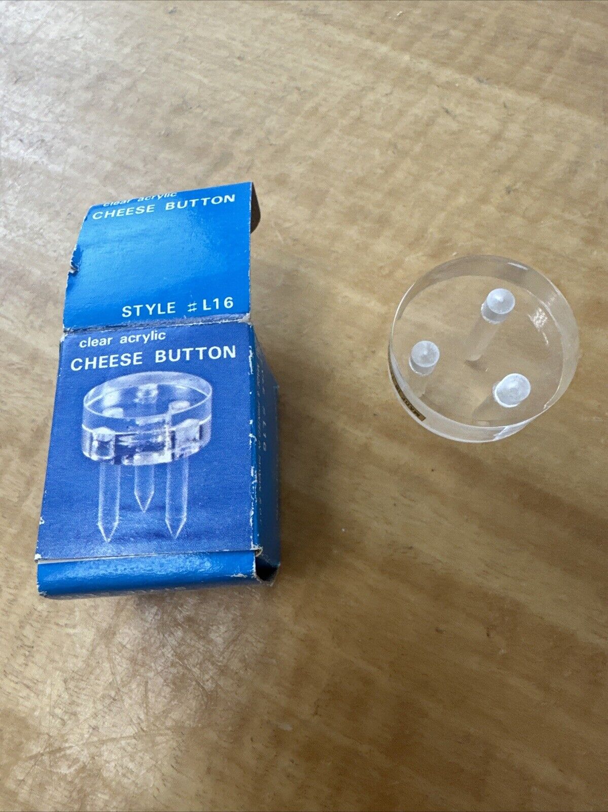 Cheese Button * Clear Acrylic * Three-Pronged * Vintage * Taiwan * In BOX