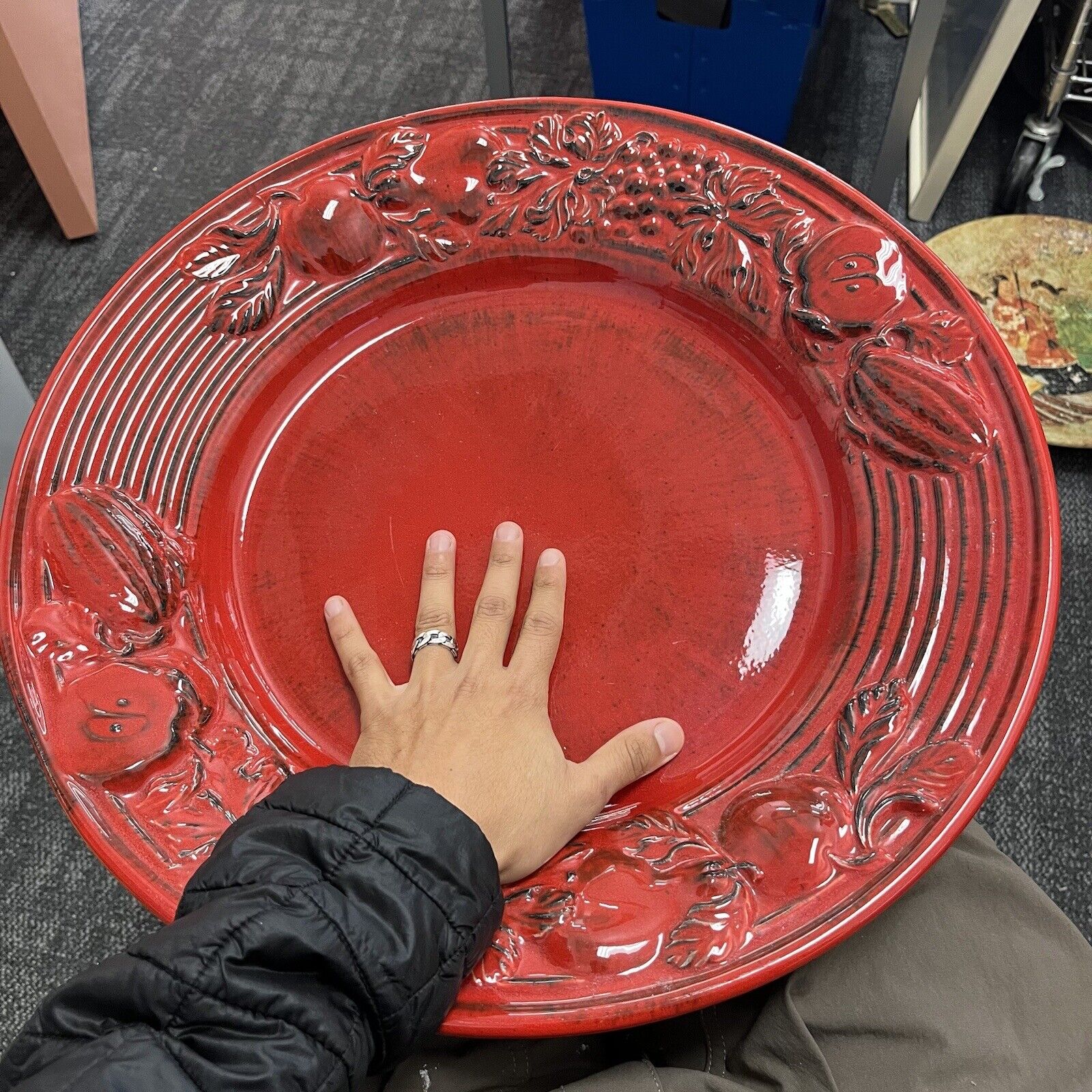 Extra Large Noemi Ceramiche Red Ceramic Fruit Plate Platter Umbria ITALY 16"