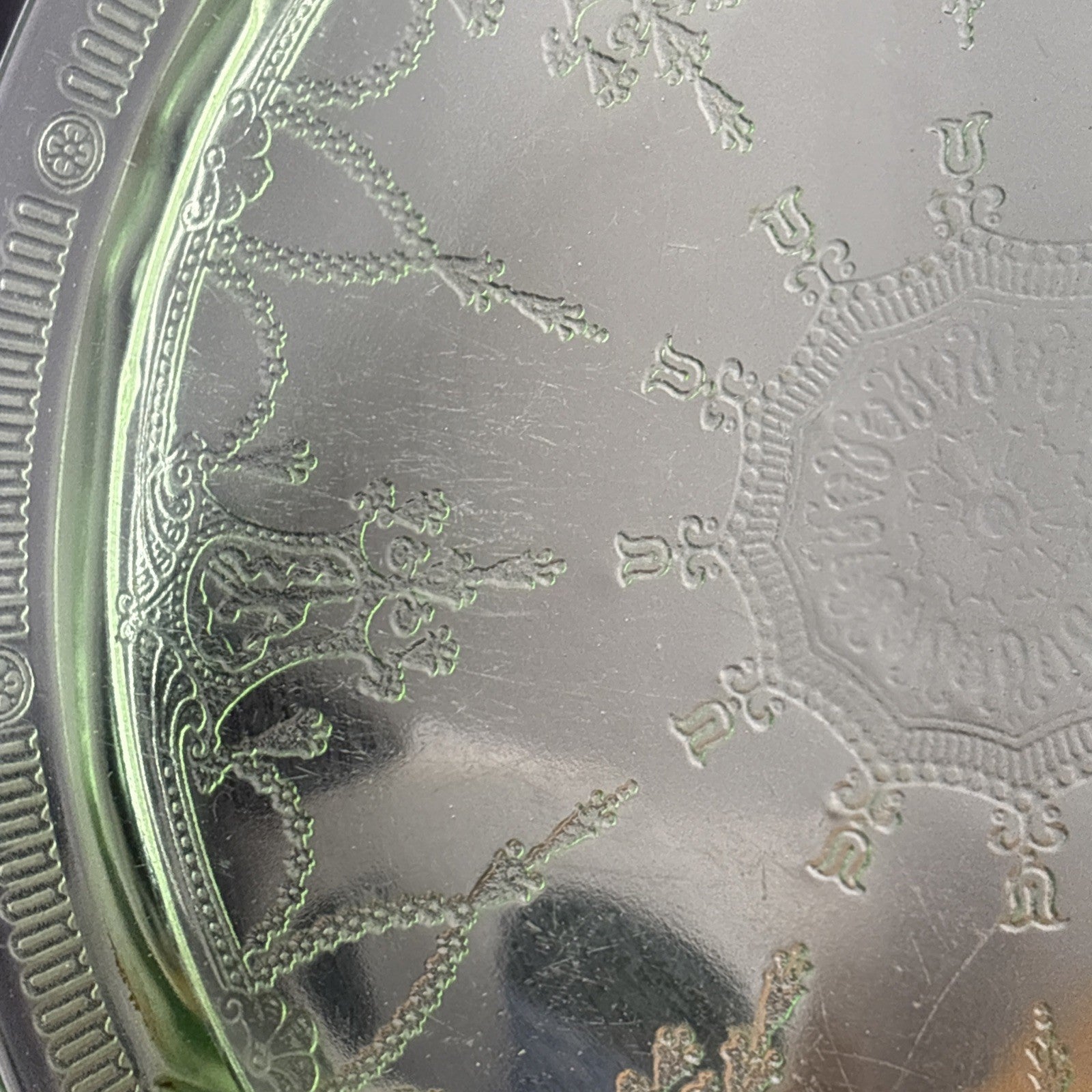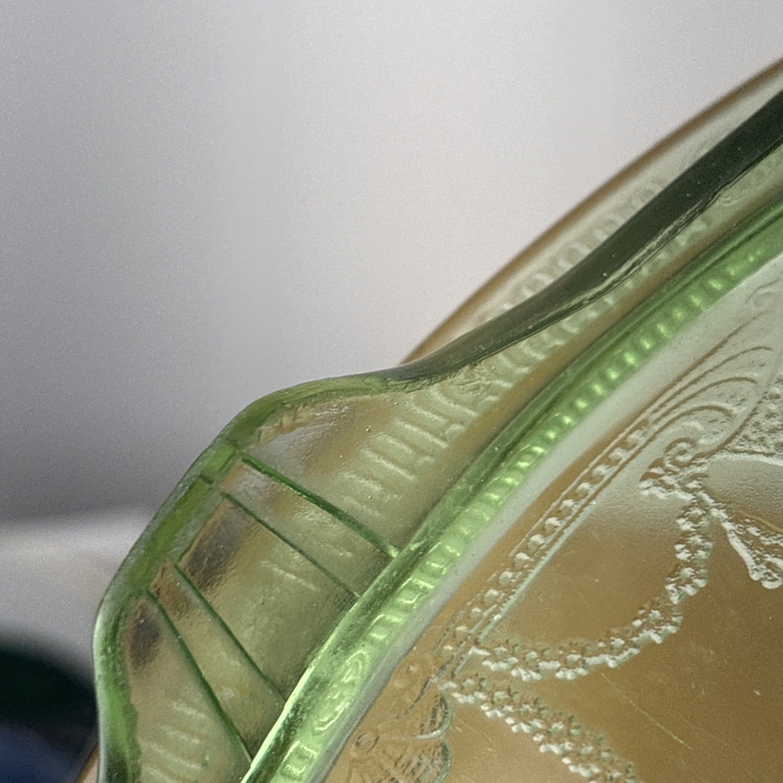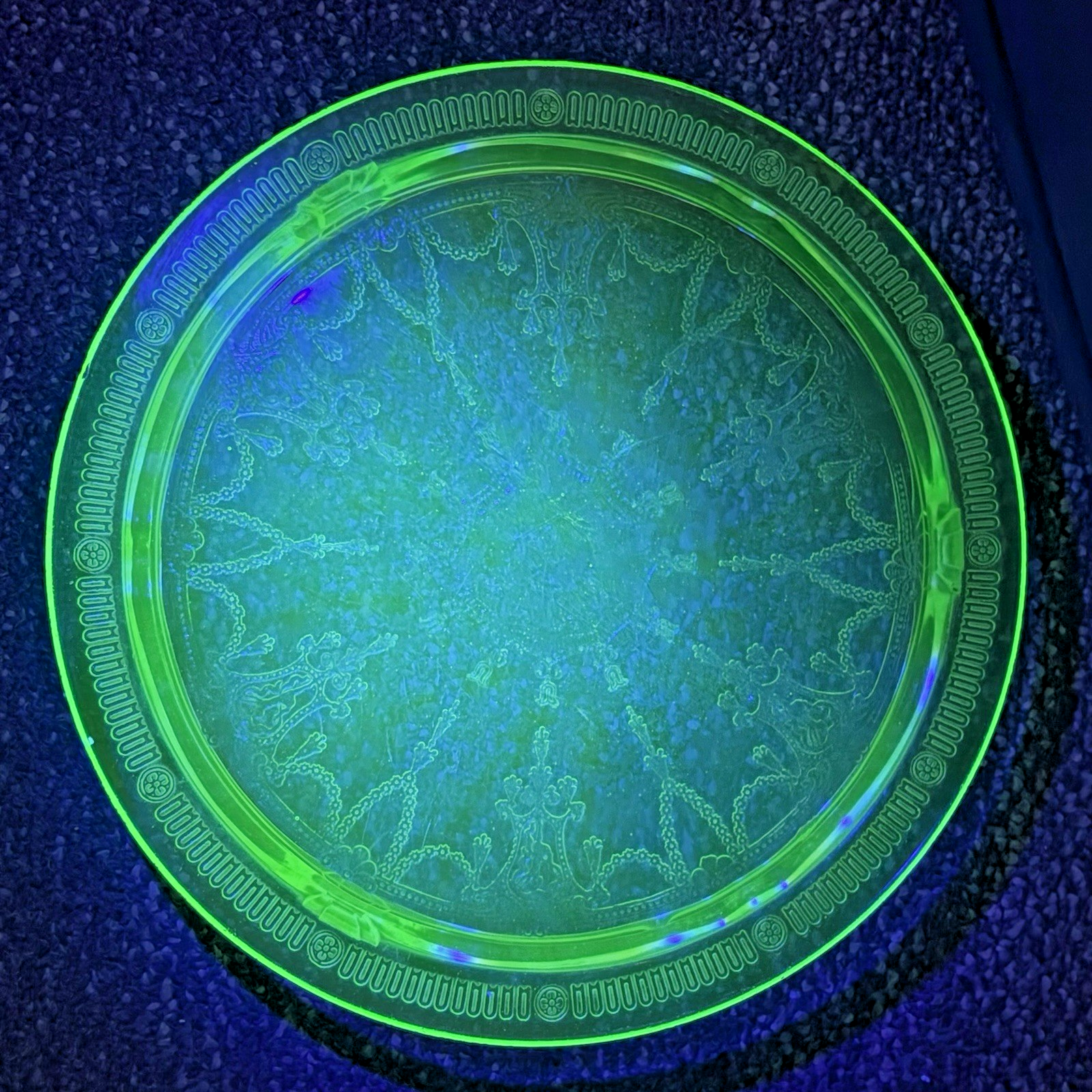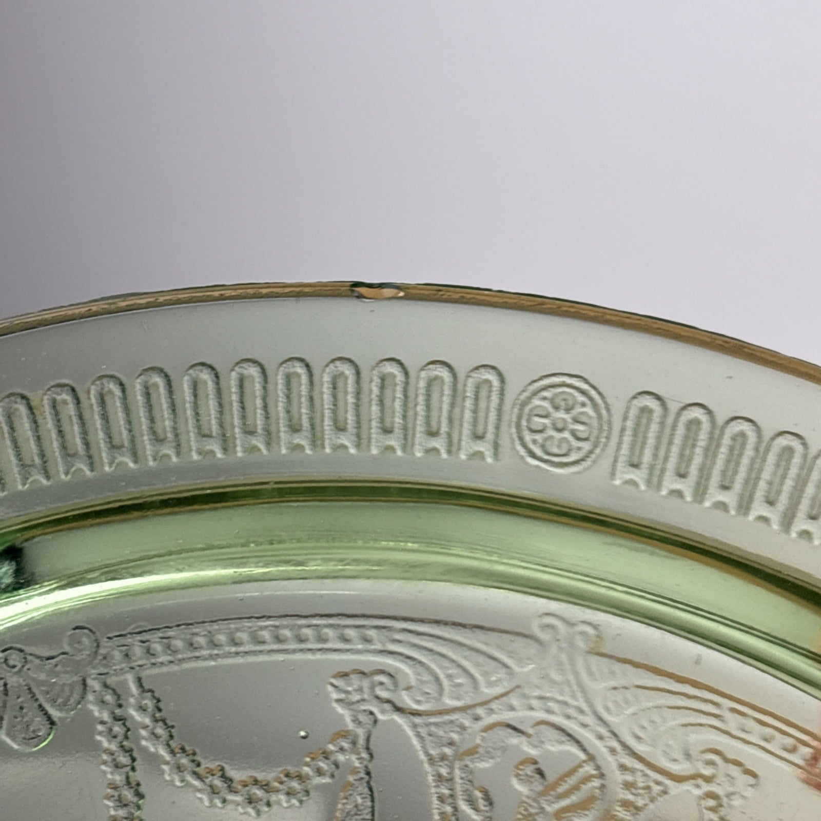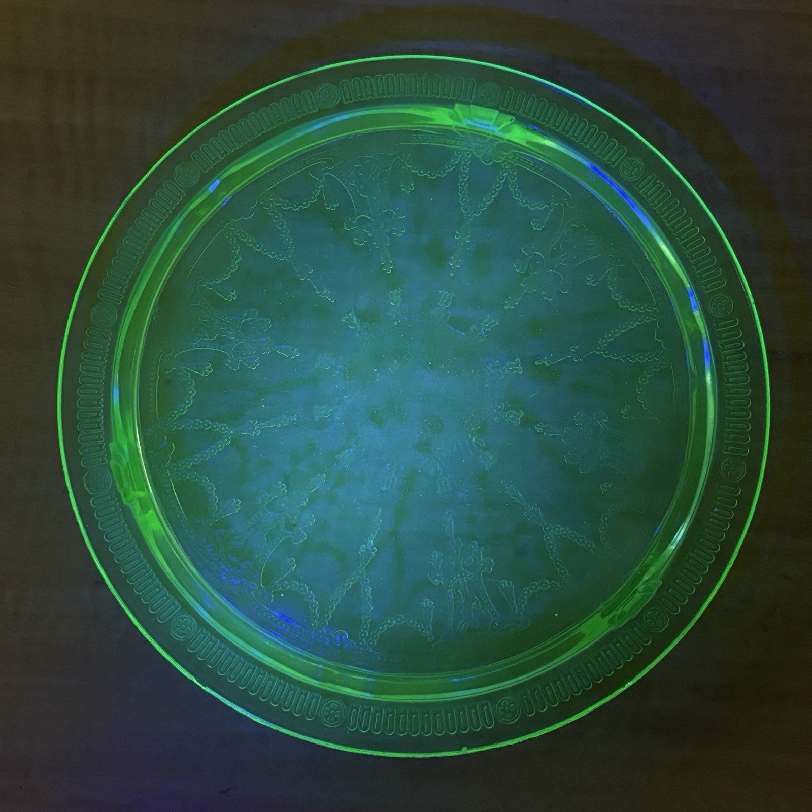 Green Uranium Depression Glass Footed Cake Plate