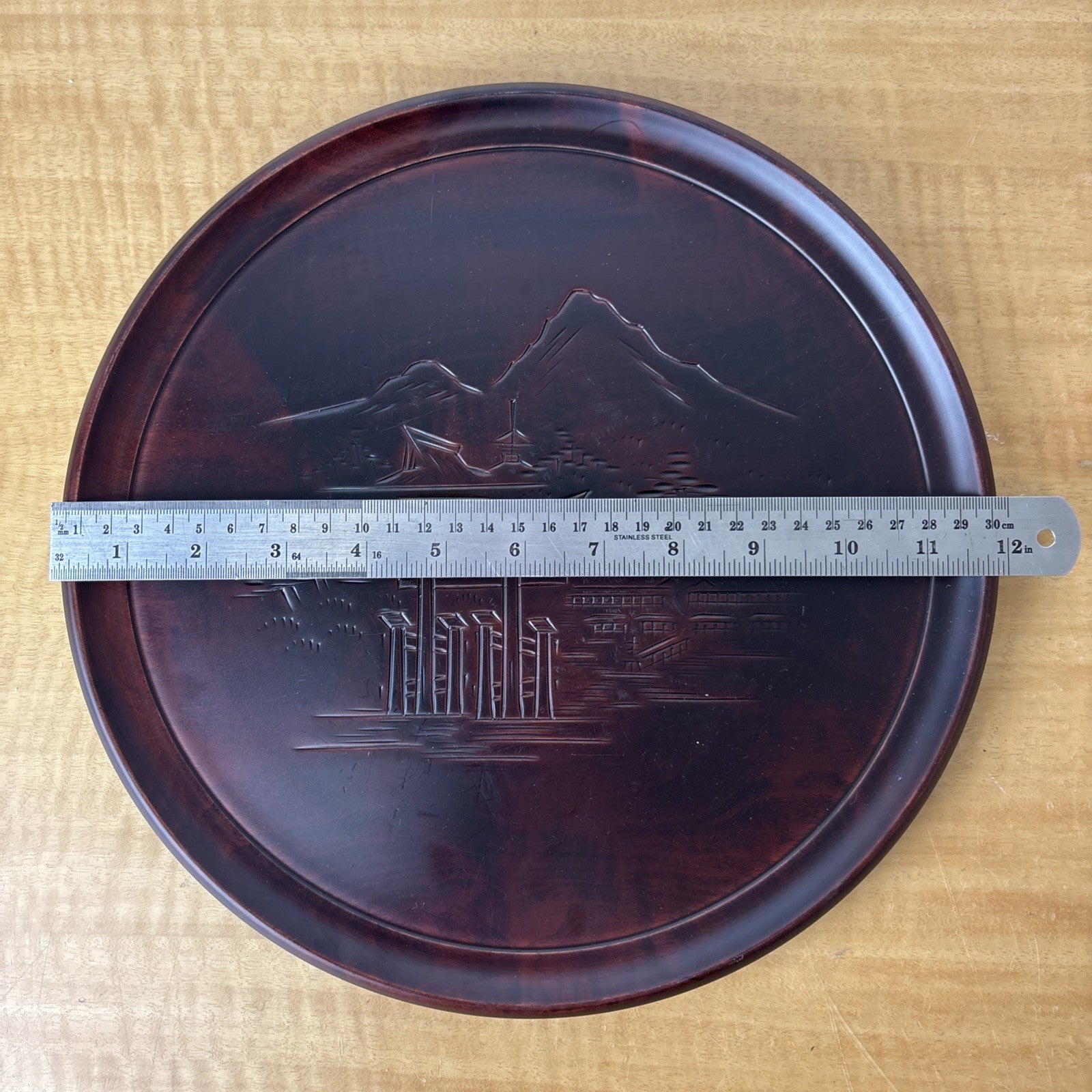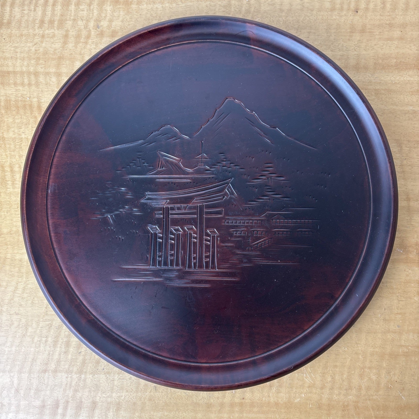 Japanese OBON Tray Hand Carved Miyajimabori Vintage