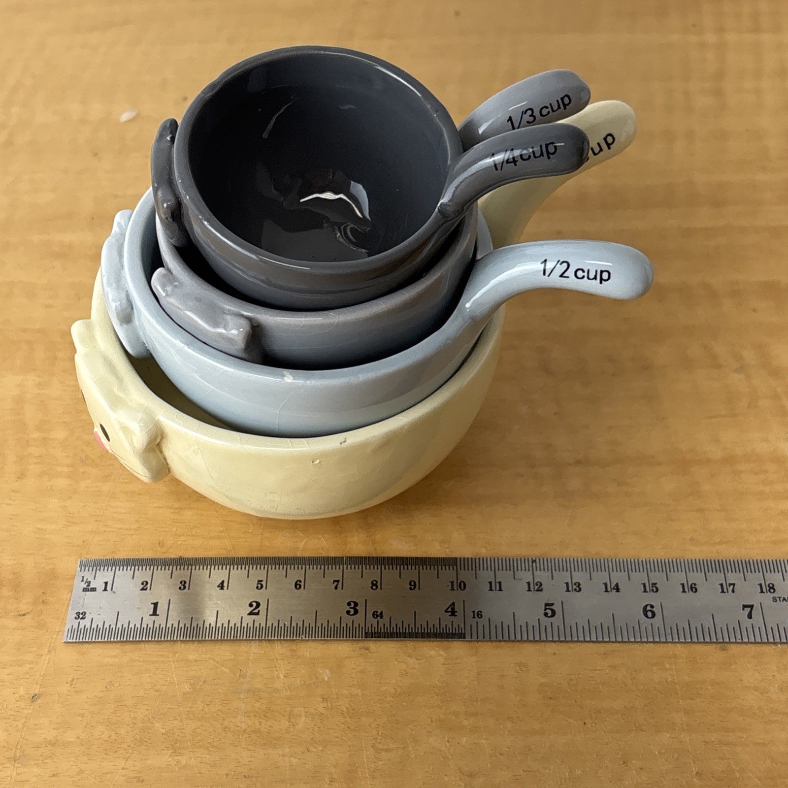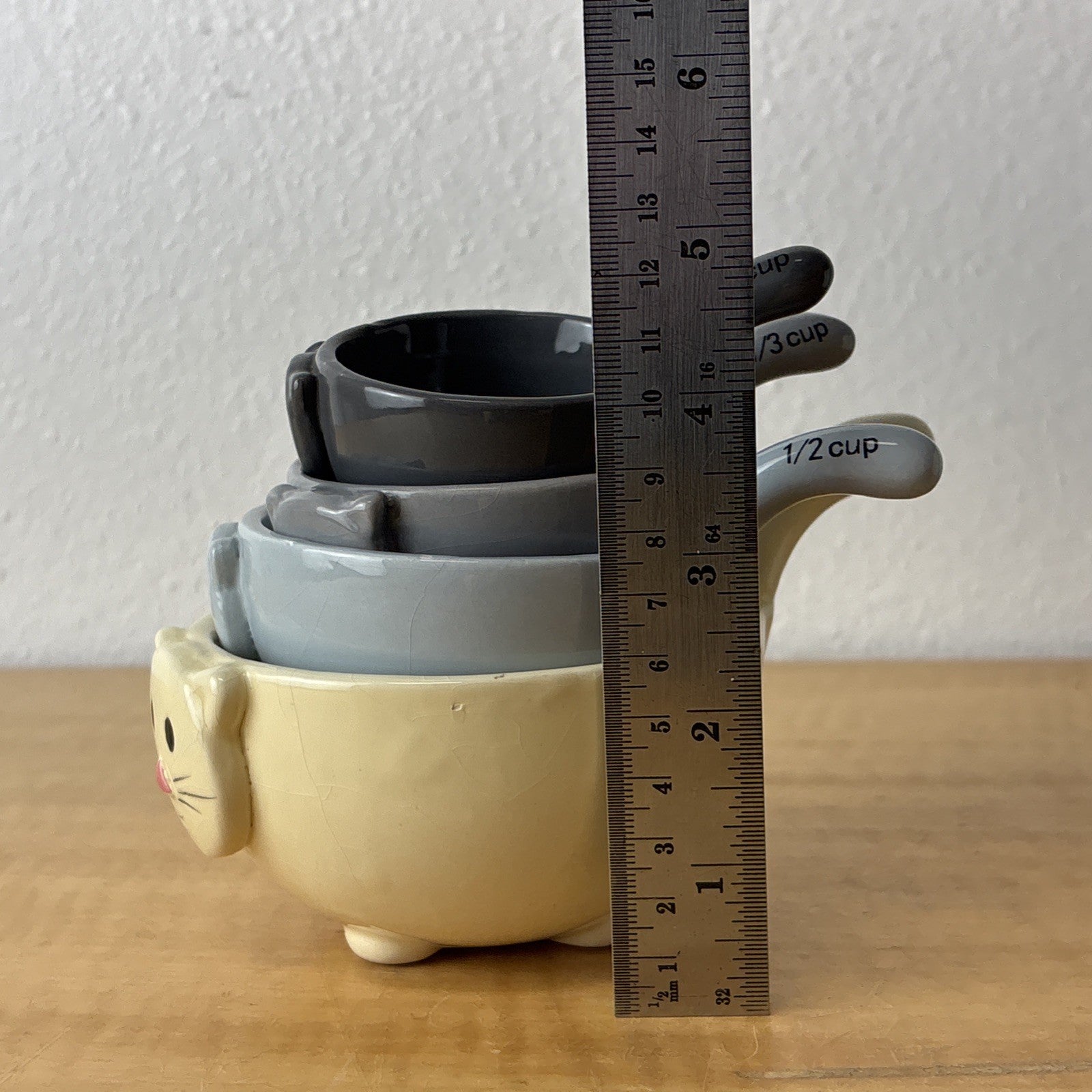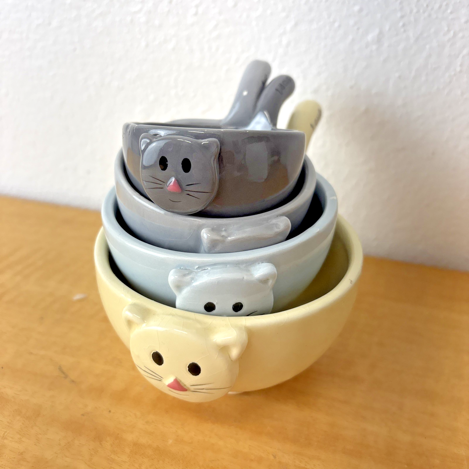 Kitty Cat Ceramic 4 Pc Nesting Stackable Measuring Cup Set Ceramic