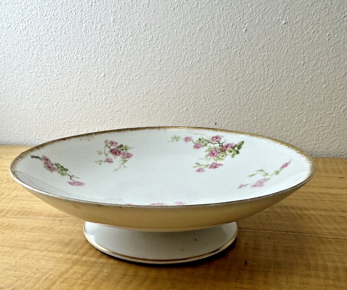 Limoges BLAKEMAN & HENDERSON France Ivory Footed Bowl with Gold Trim Floral Bowl
