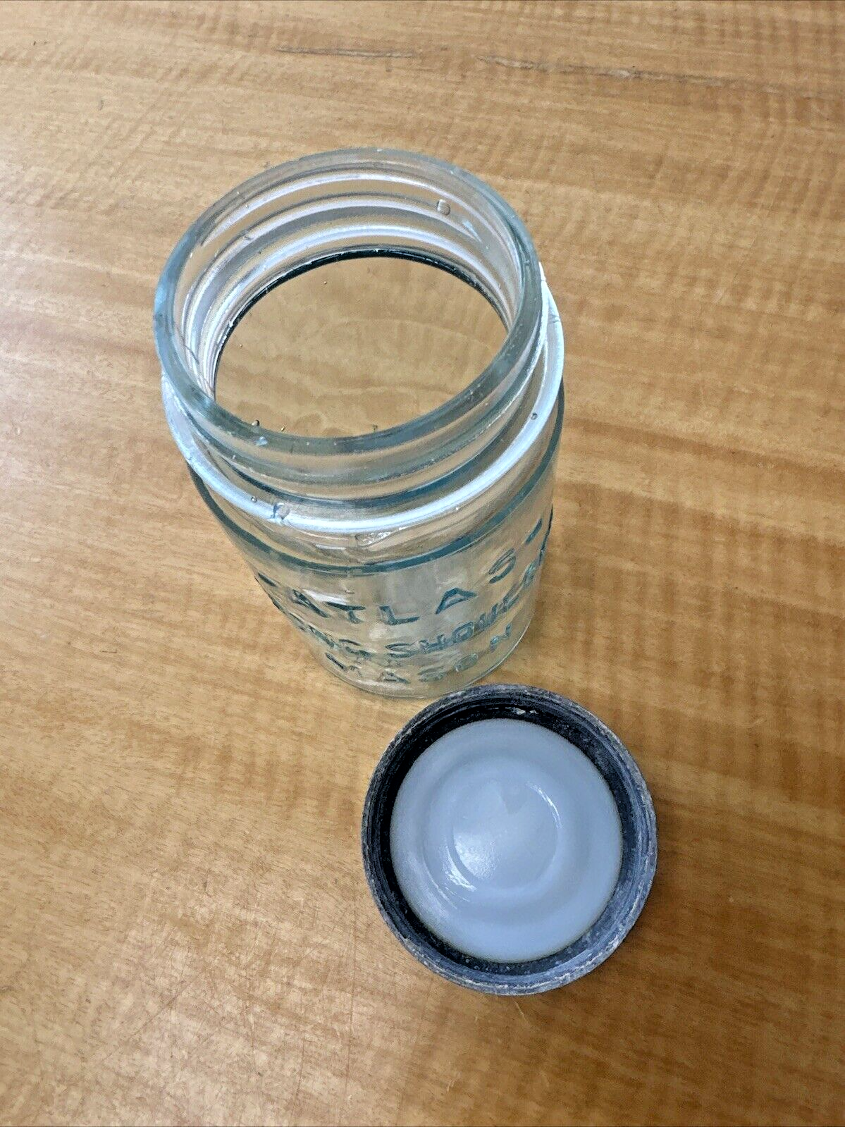 LT CORNFLOWER BLUE ATLAS STRONG SHOULDER MASON PINT FRUIT JAR WITH ATLAS EMB LID