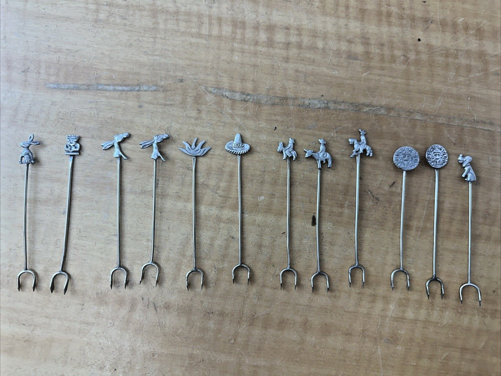 Mexican cocktail forks .825 Silver vintage set of 12 (3.5”long)