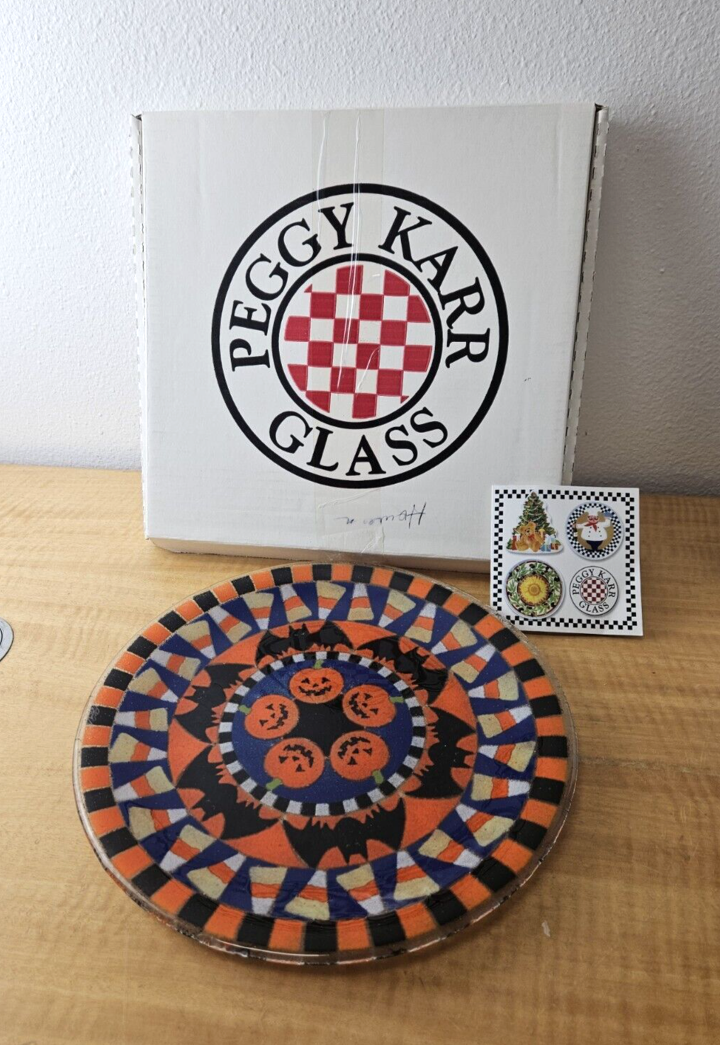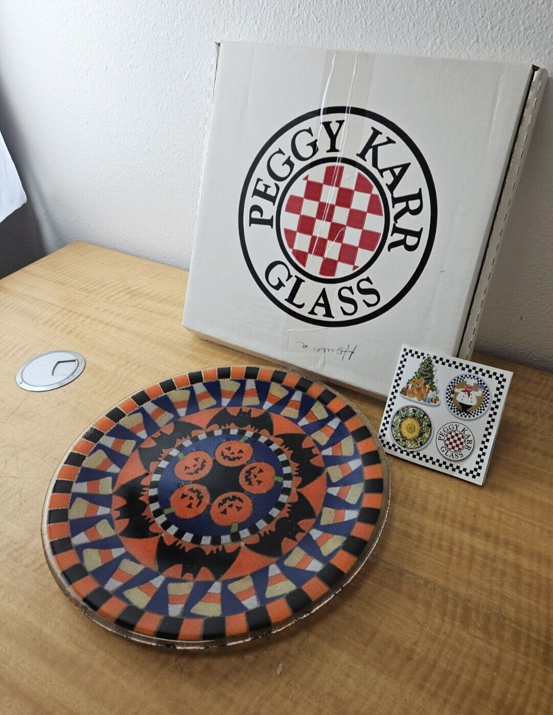 Peggy Karr Halloween 11" ROUND Trick or Teat Fused Glass Plate Signed TT11P