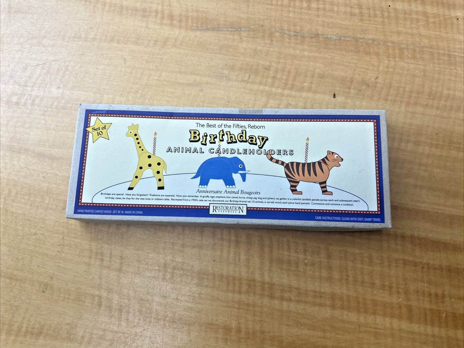 Restoration Hardware Wood Animal Birthday Cake Candle Holders, Hand Painted