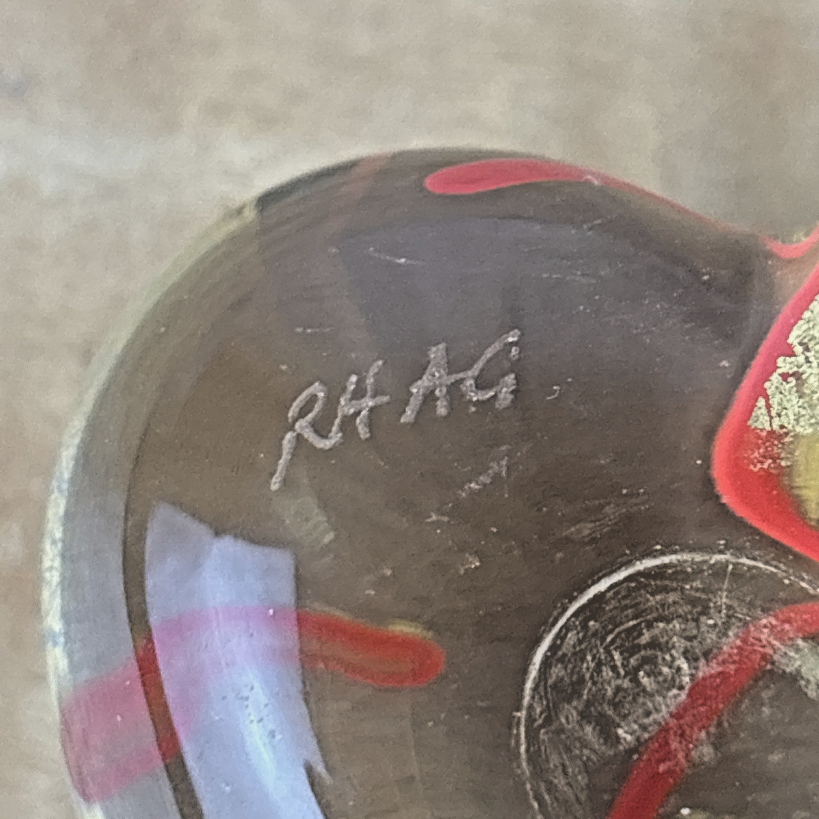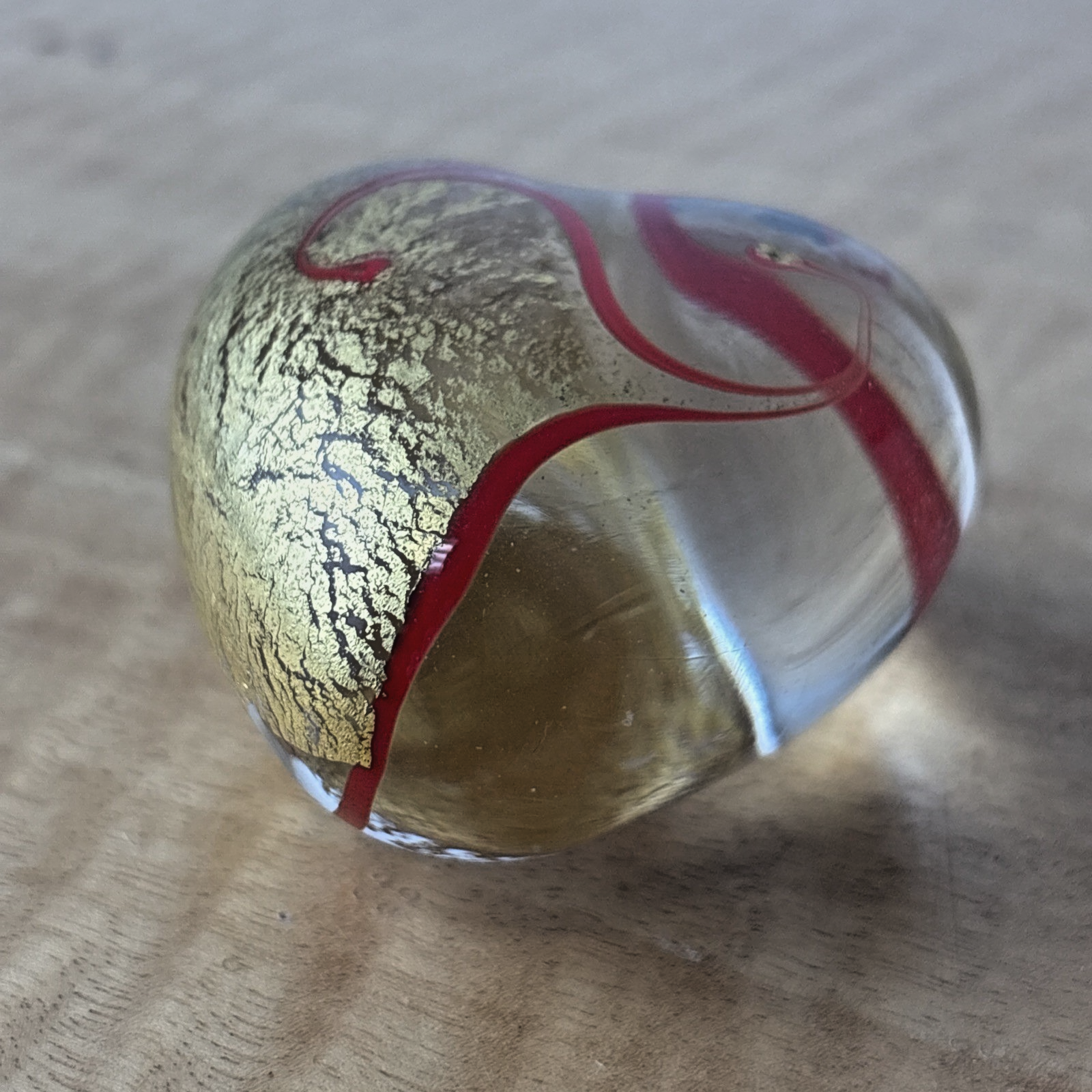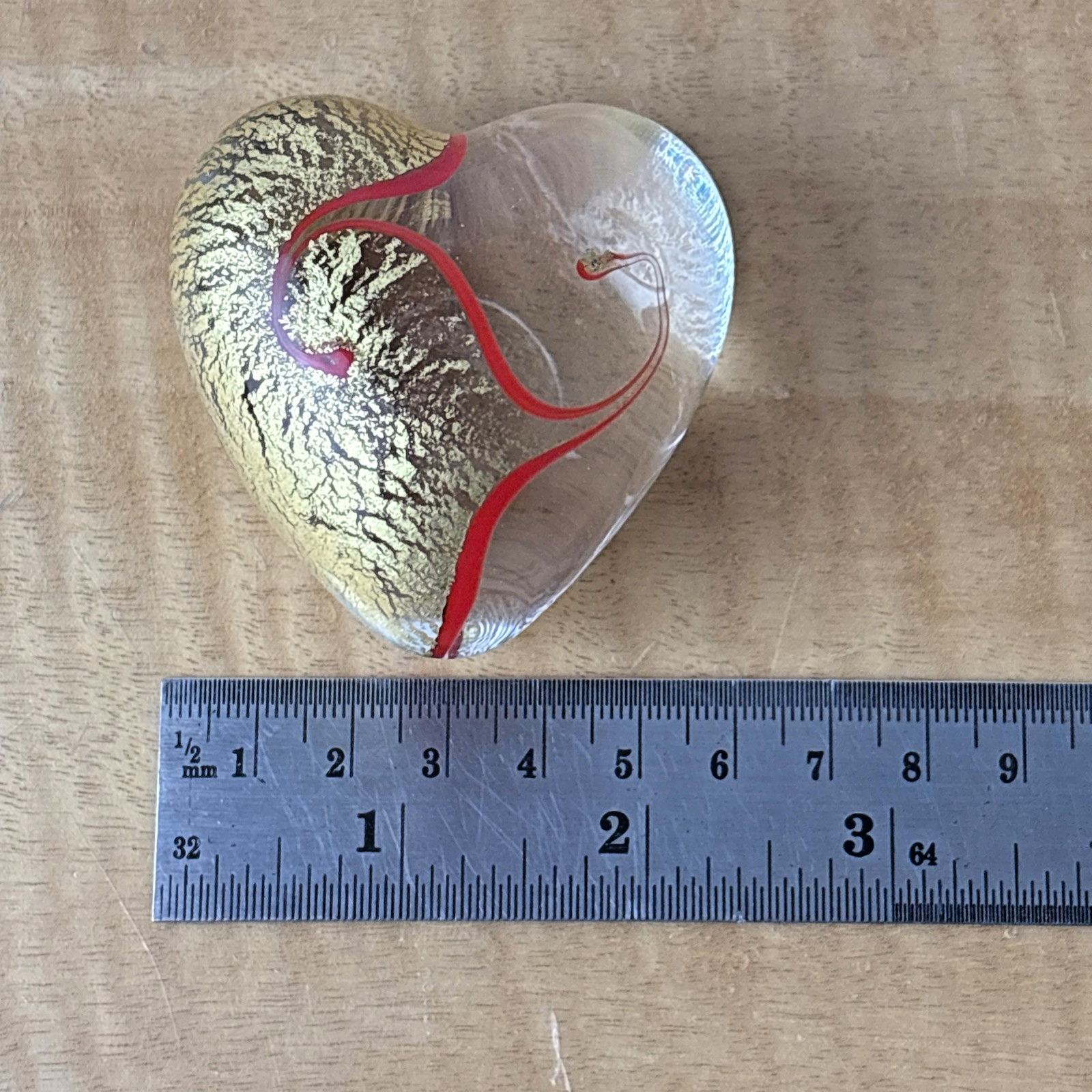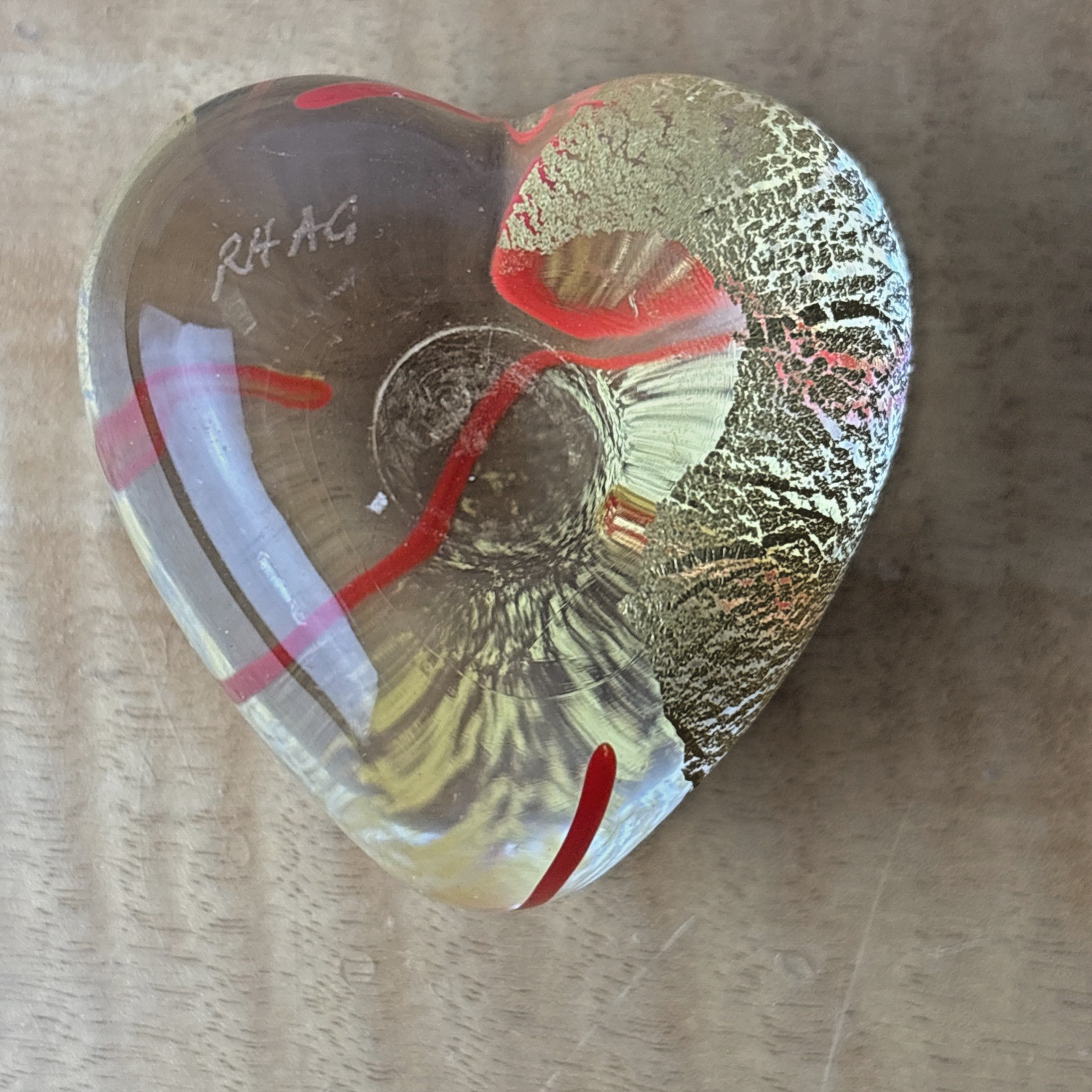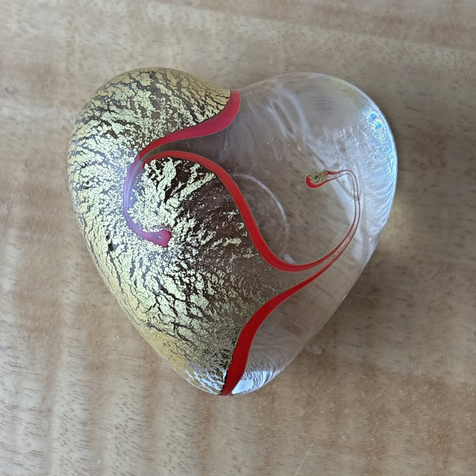 Robert Held Art Glass Studio Heart Shaped Signed RHAG Paperweight Red Gold