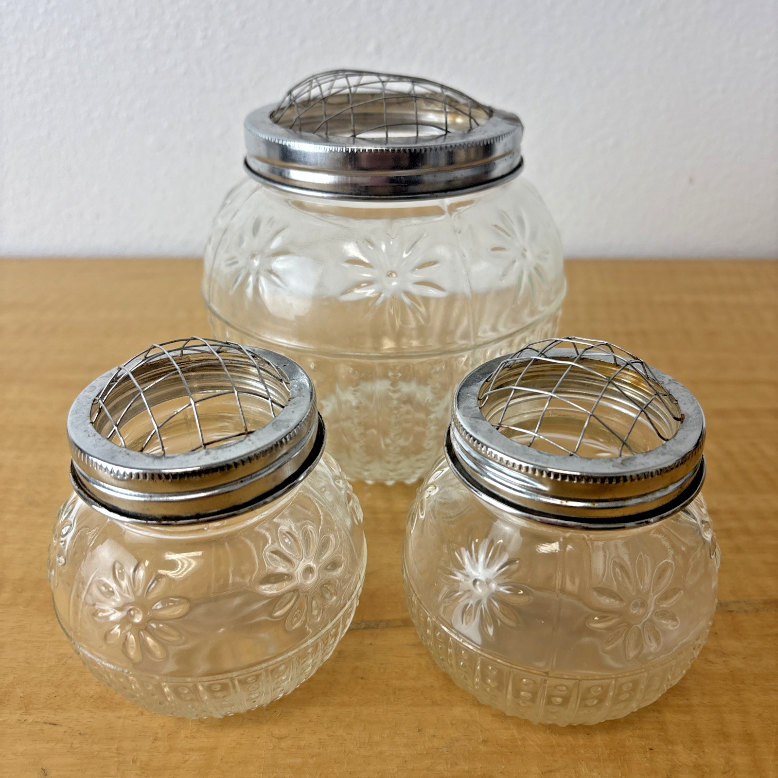 Set of 3 2003 Vintage ASP Pressed Glass Frog Lid Containers - Floral Design