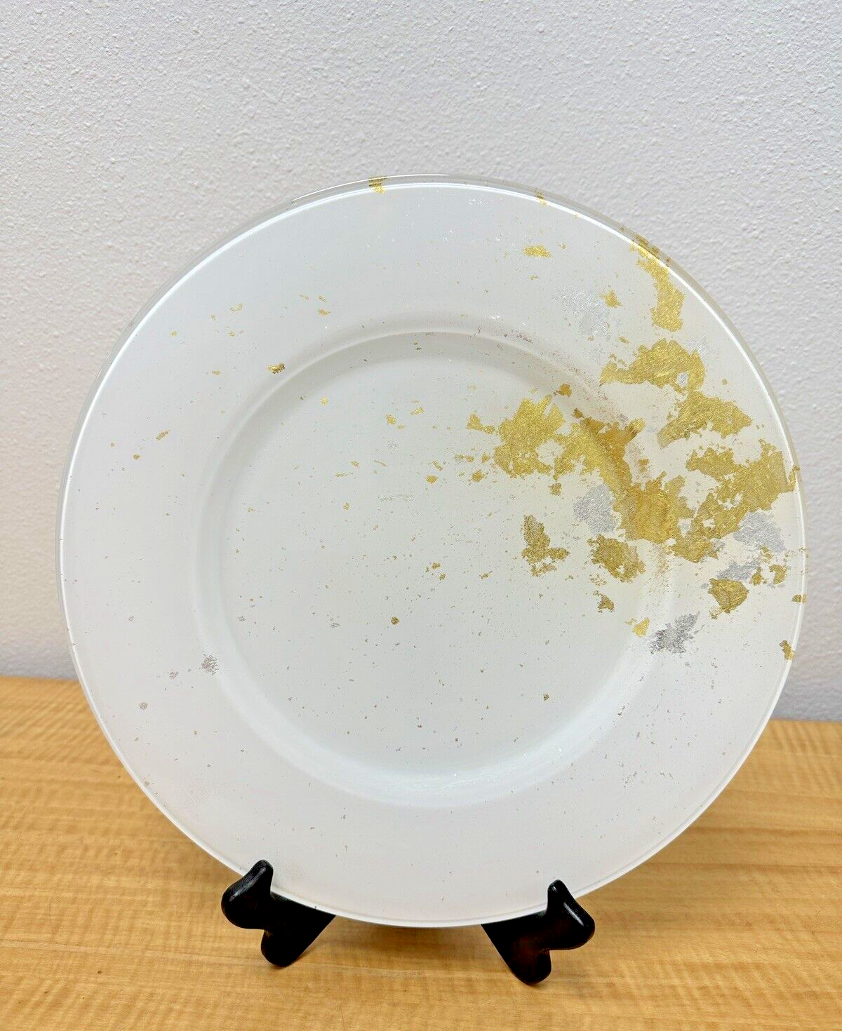 SYOSAKU JAPANESE URUSHI GLASS CHARGER PLATE 13.9-INCH PURE WHITE WITH GOLD LEAF