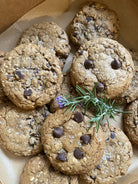 My signature salted dark chocolate + oatmeal cookie. The perfect balance of sweet and salty, with each bite delivering a heavenly combination of luscious chocolate chunks and the comforting texture of oatmeal.