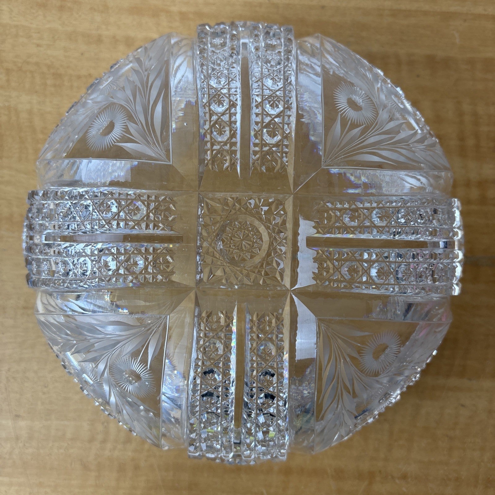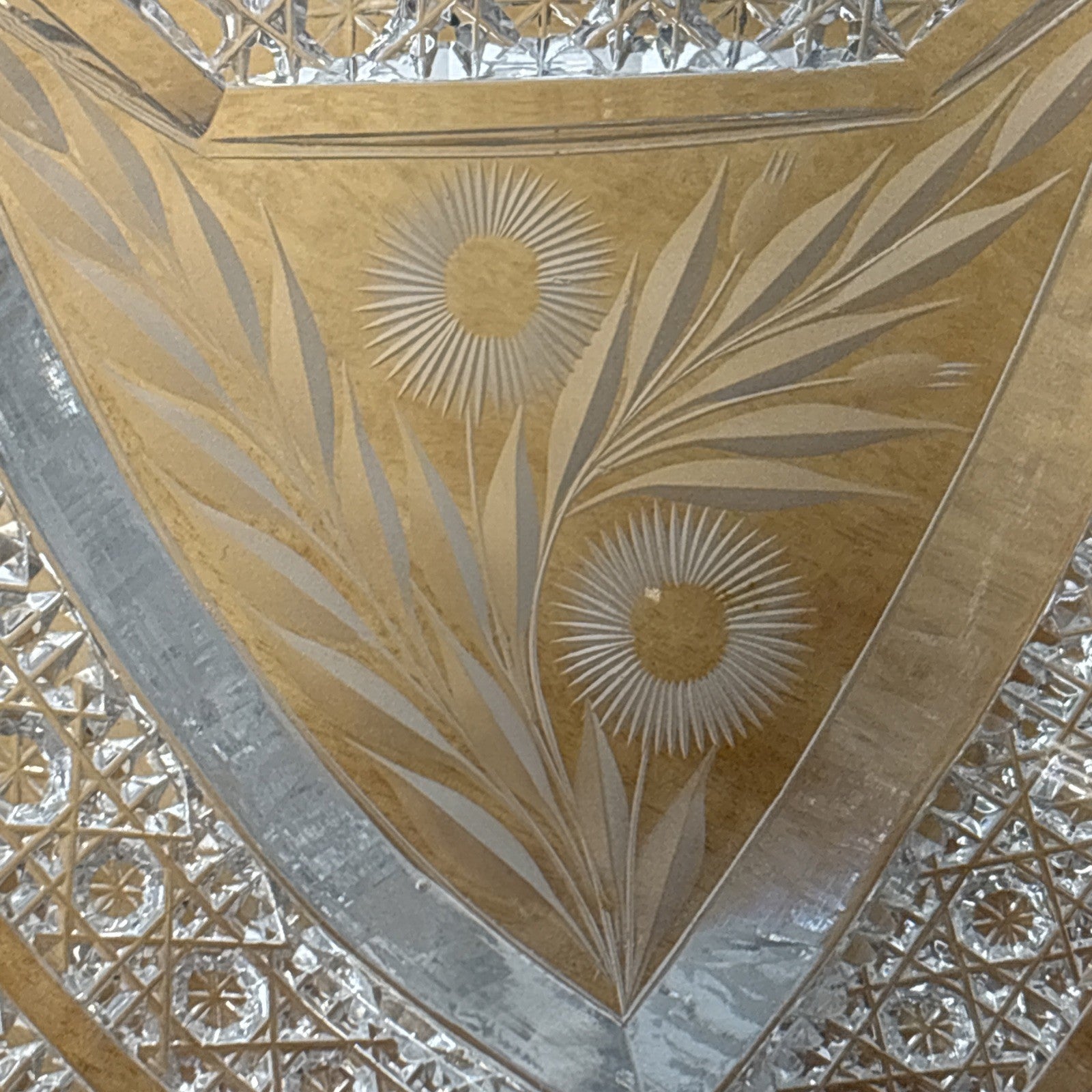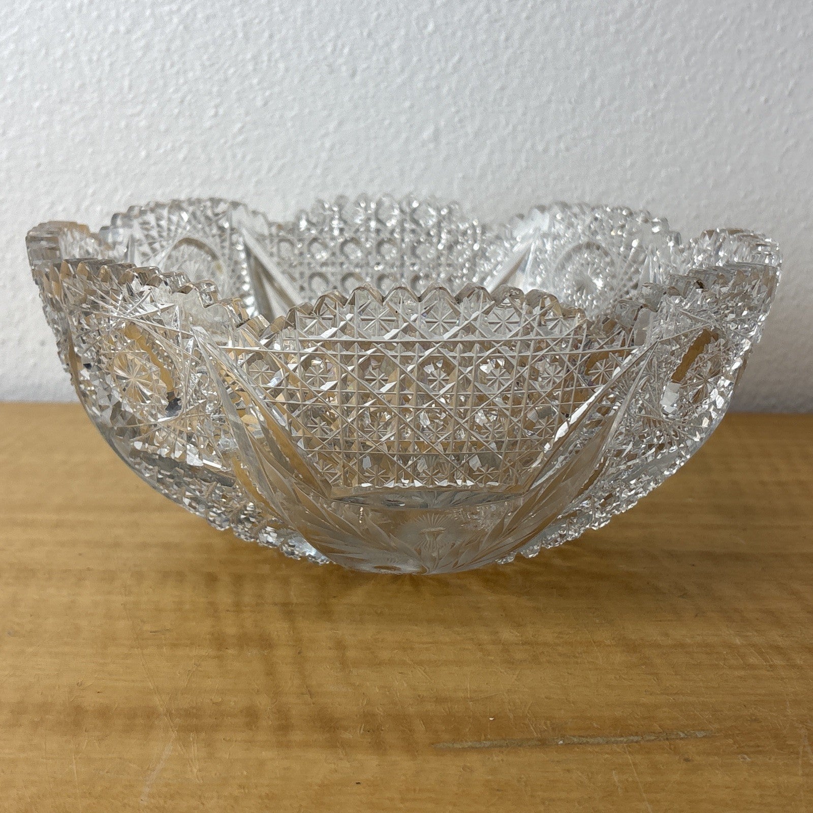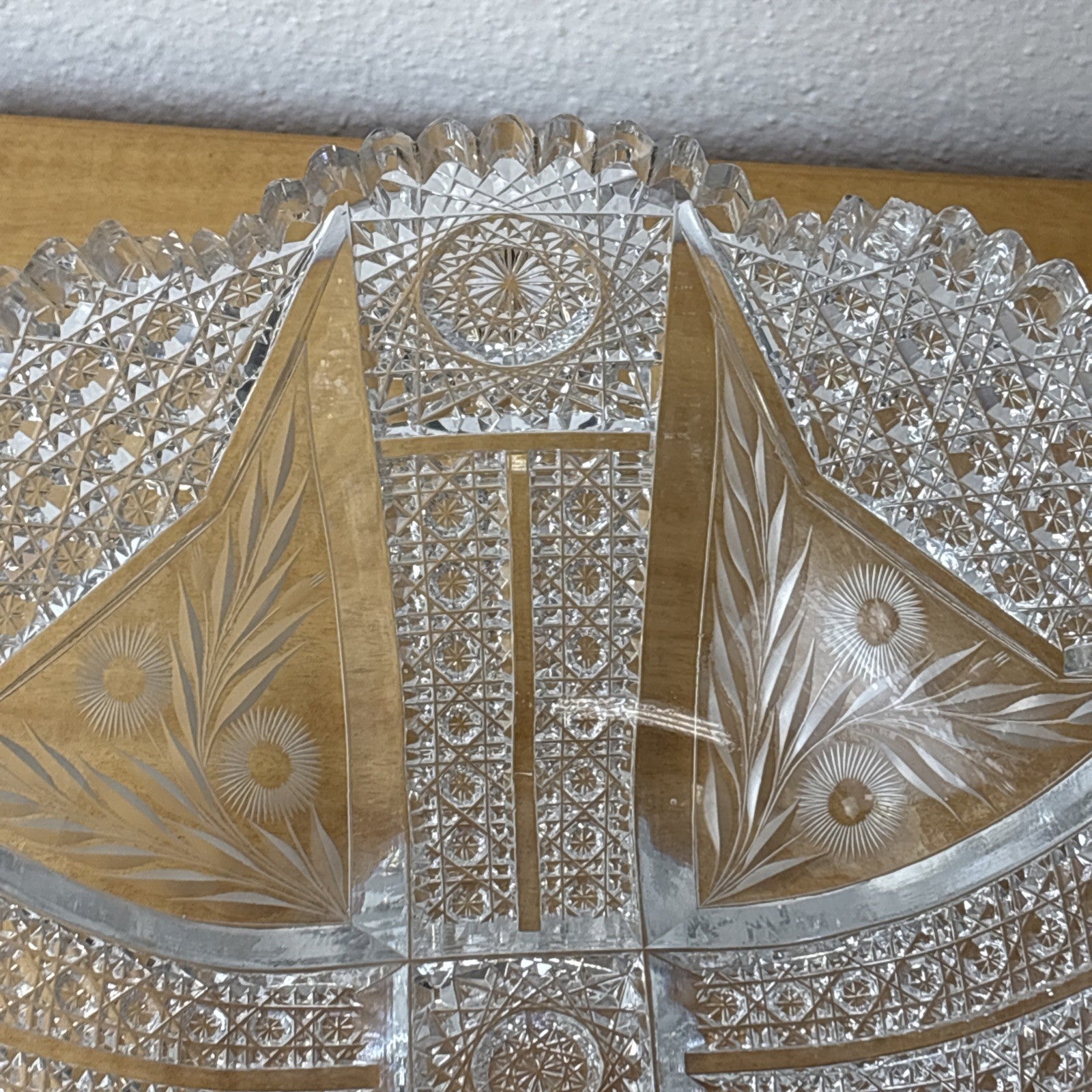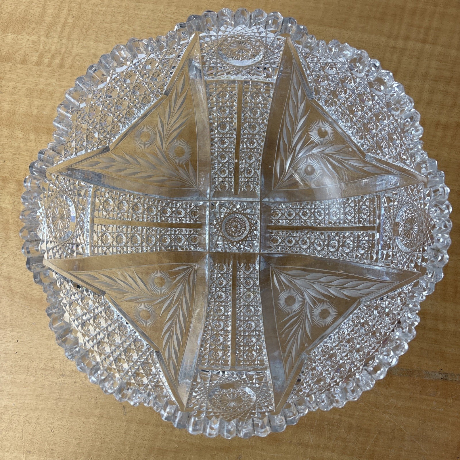 Vintage American Brilliant Cut Glass ABP Serving Bowl Etched Floral 9.5"