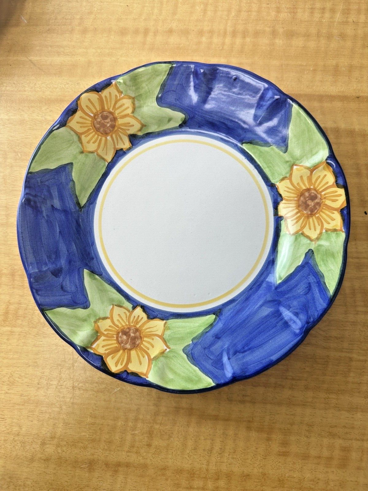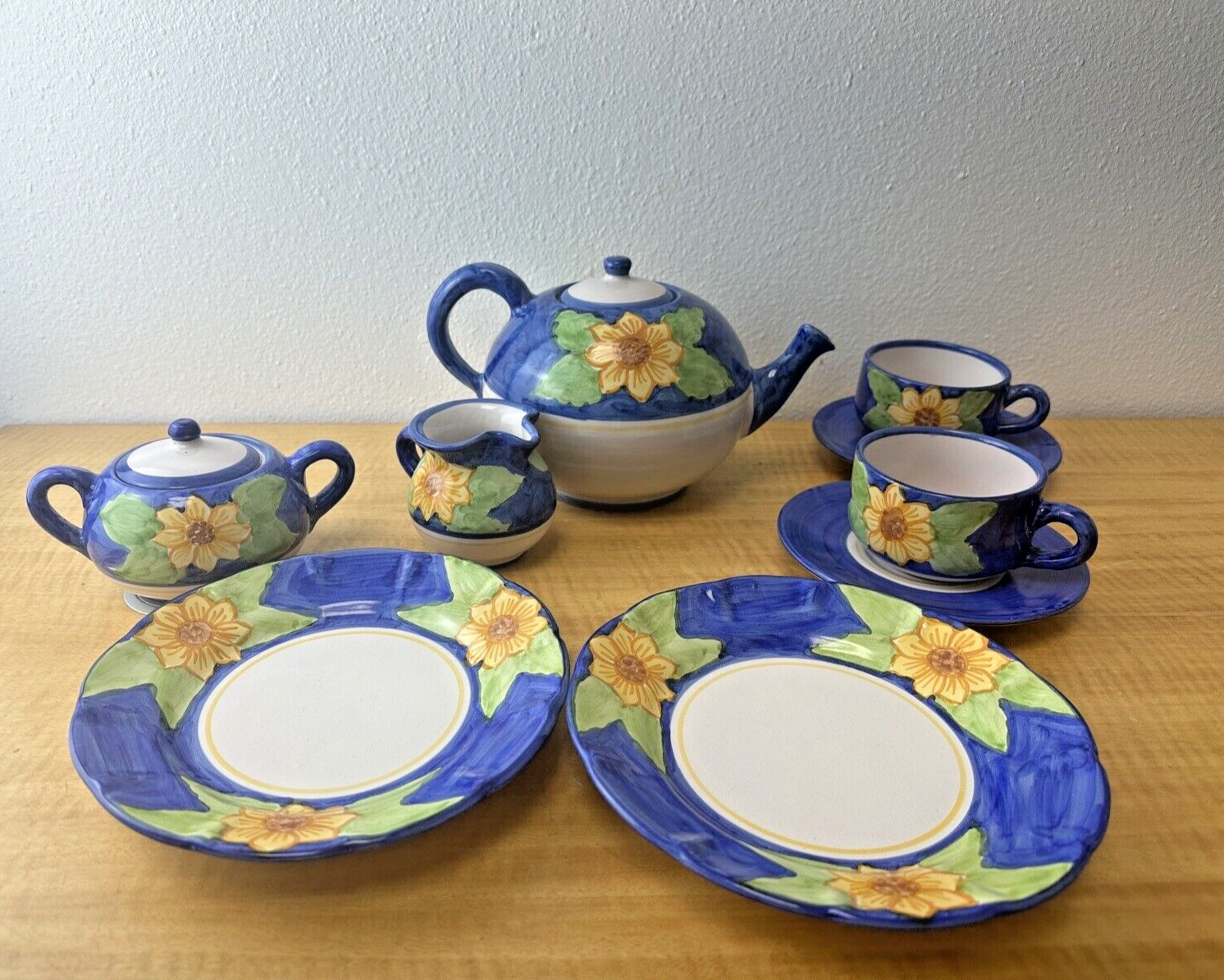 Vintage Campagna Vietri Solimene Blue Sunflower Tea Set