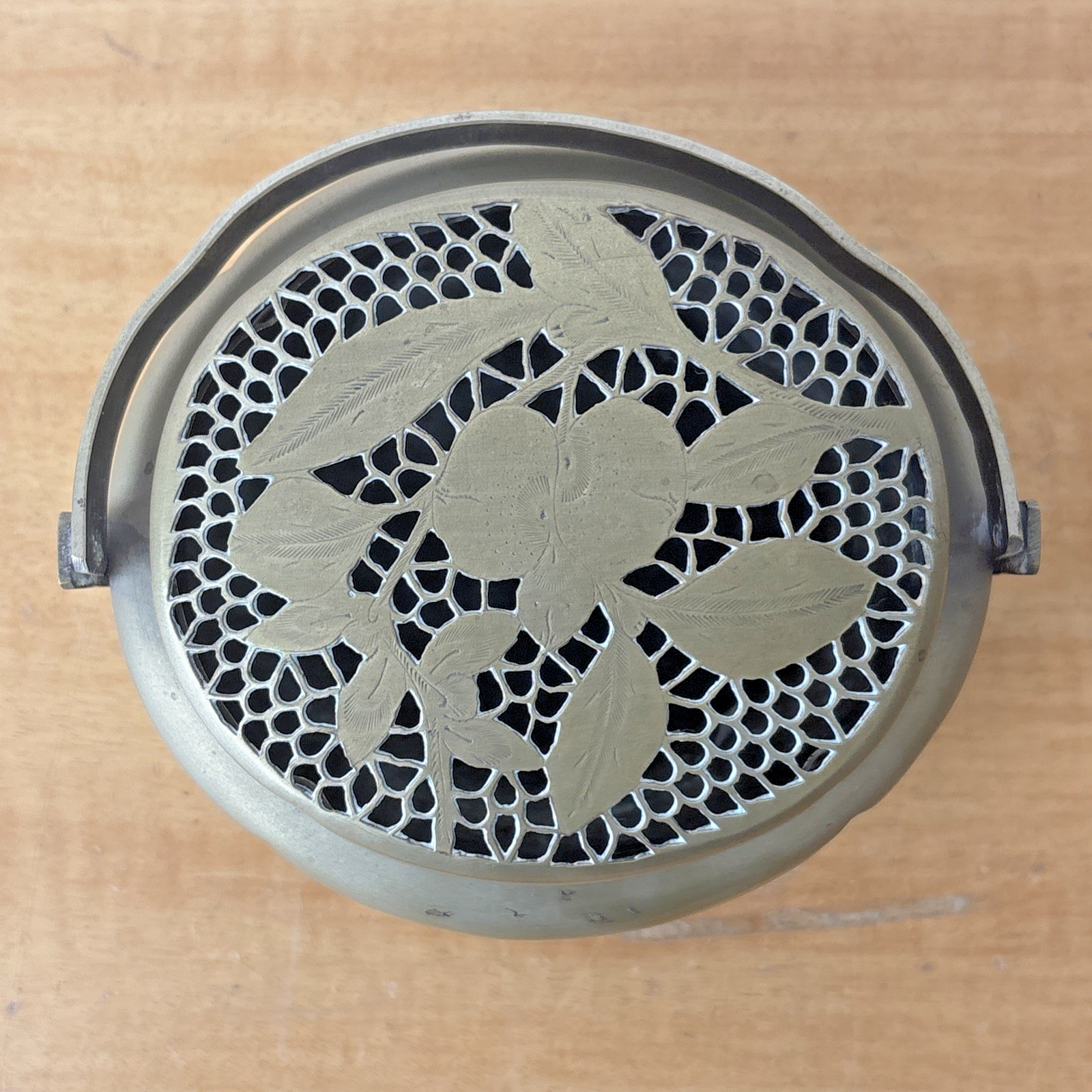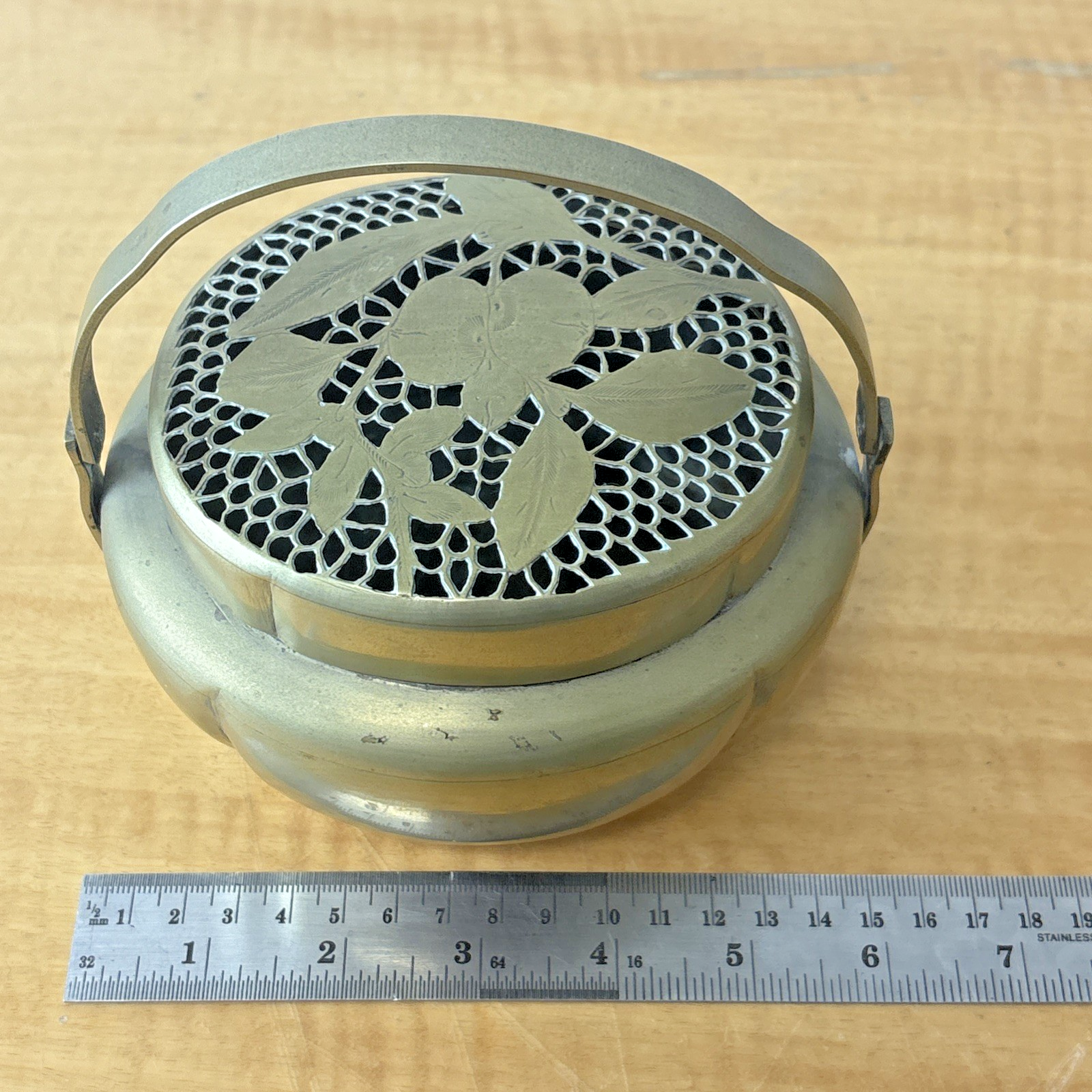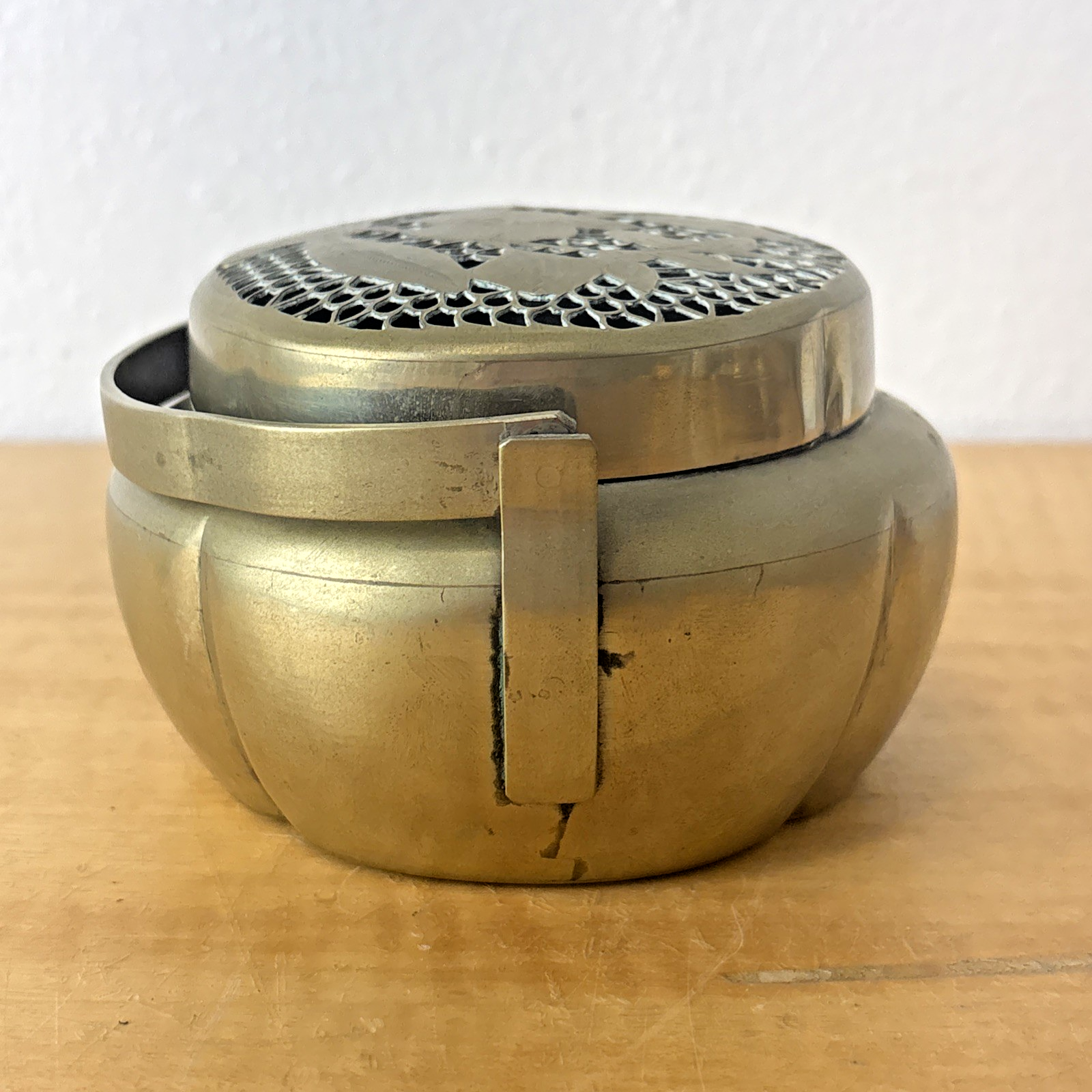 Vintage Chinese Brass Brazier Hand Warmer Flower Etched Design