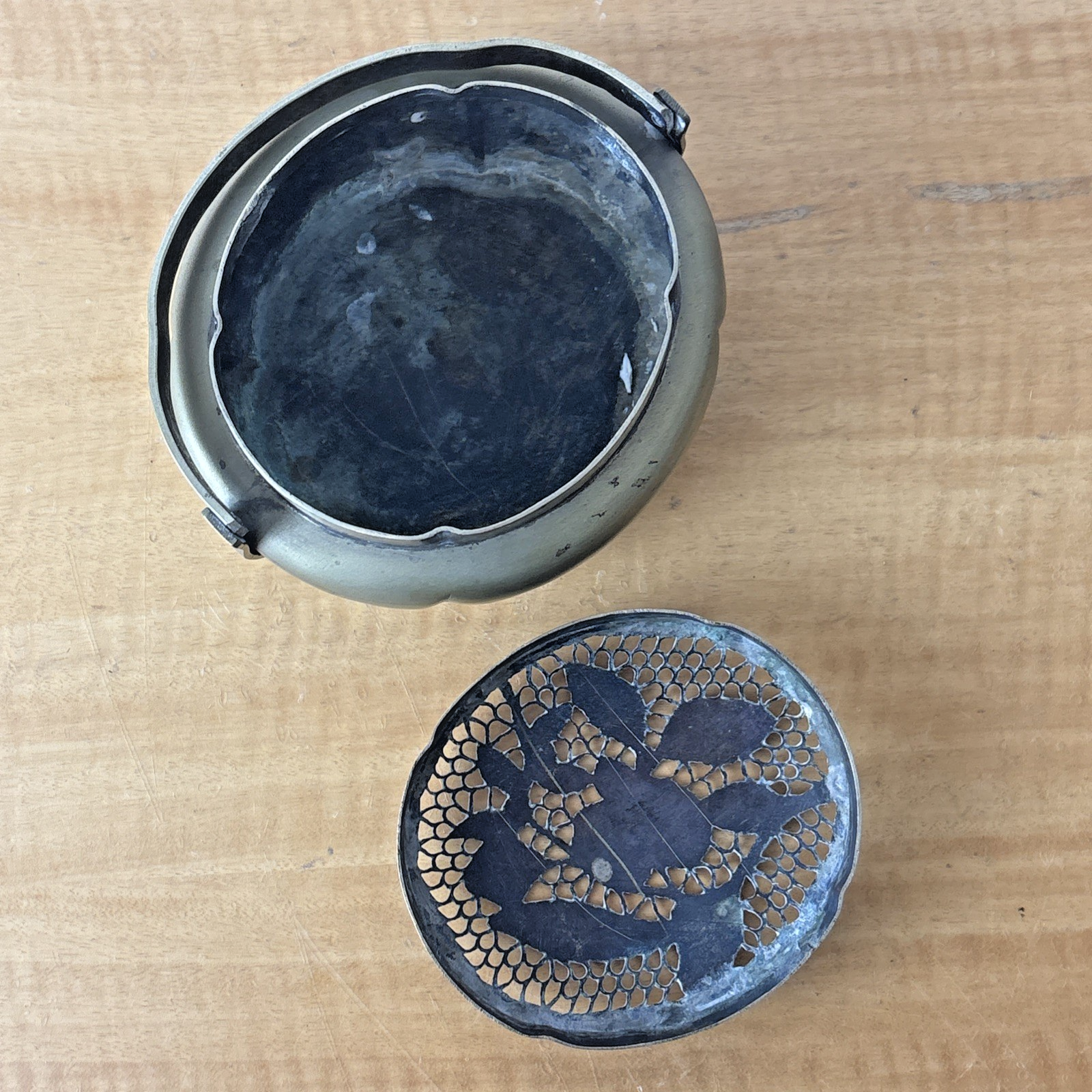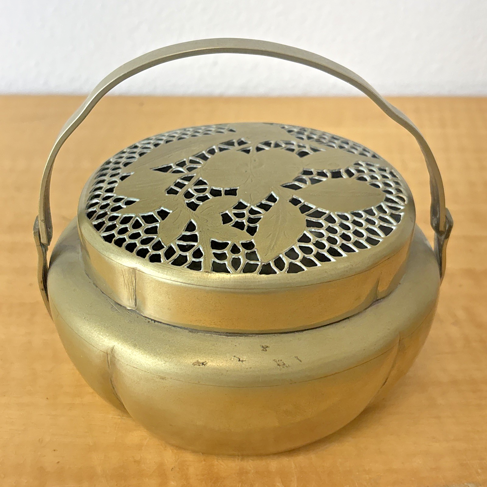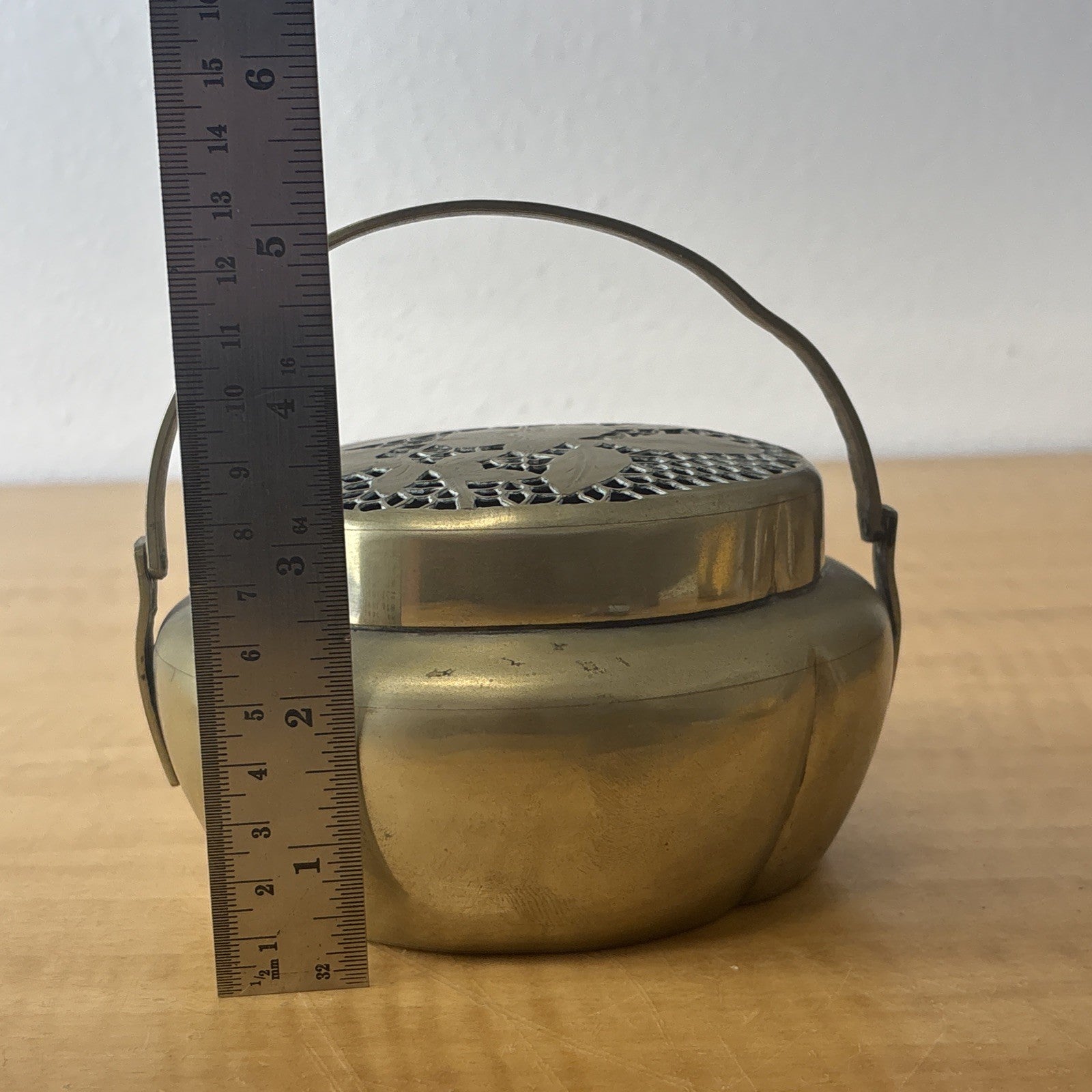 Vintage Chinese Brass Brazier Hand Warmer Flower Etched Design
