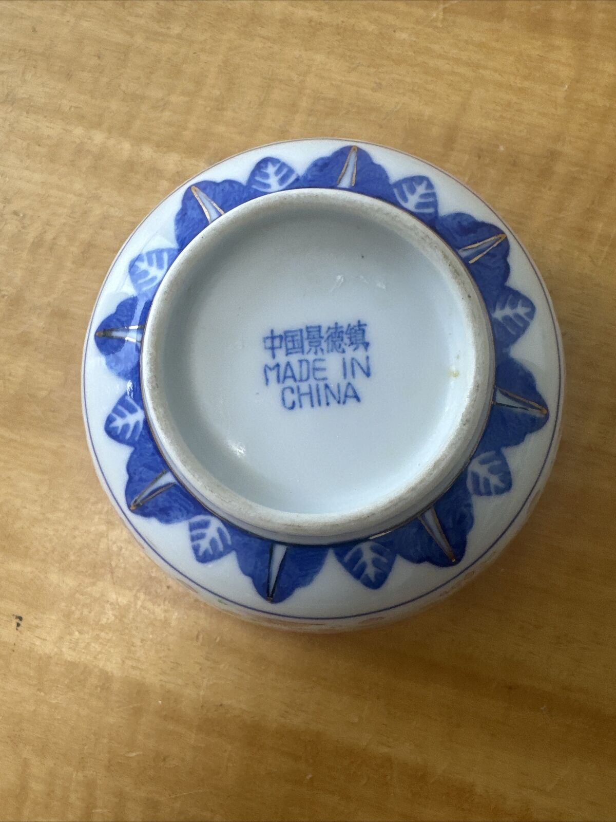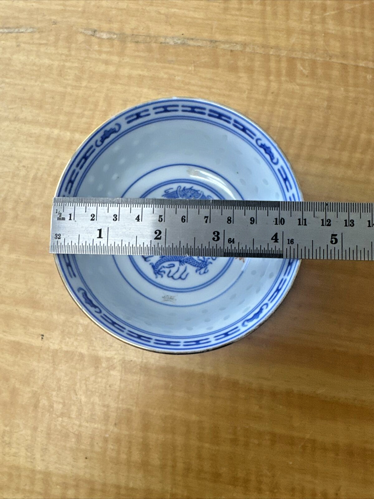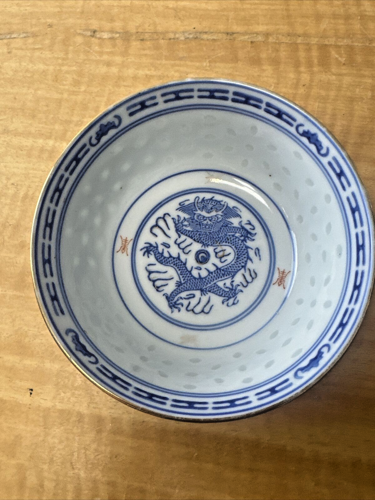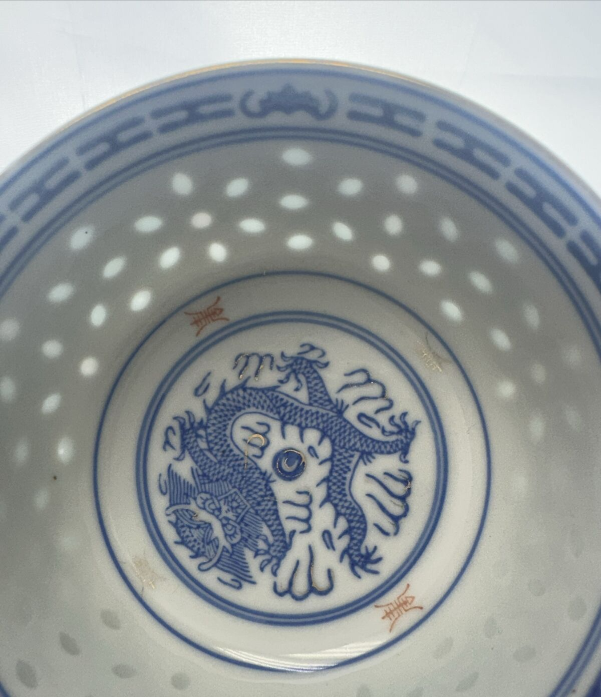 Vintage Chinese Rice Bowl Rice Pattern Grain Blue/White/Orange