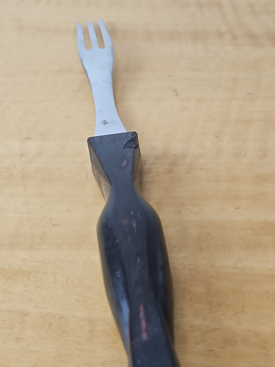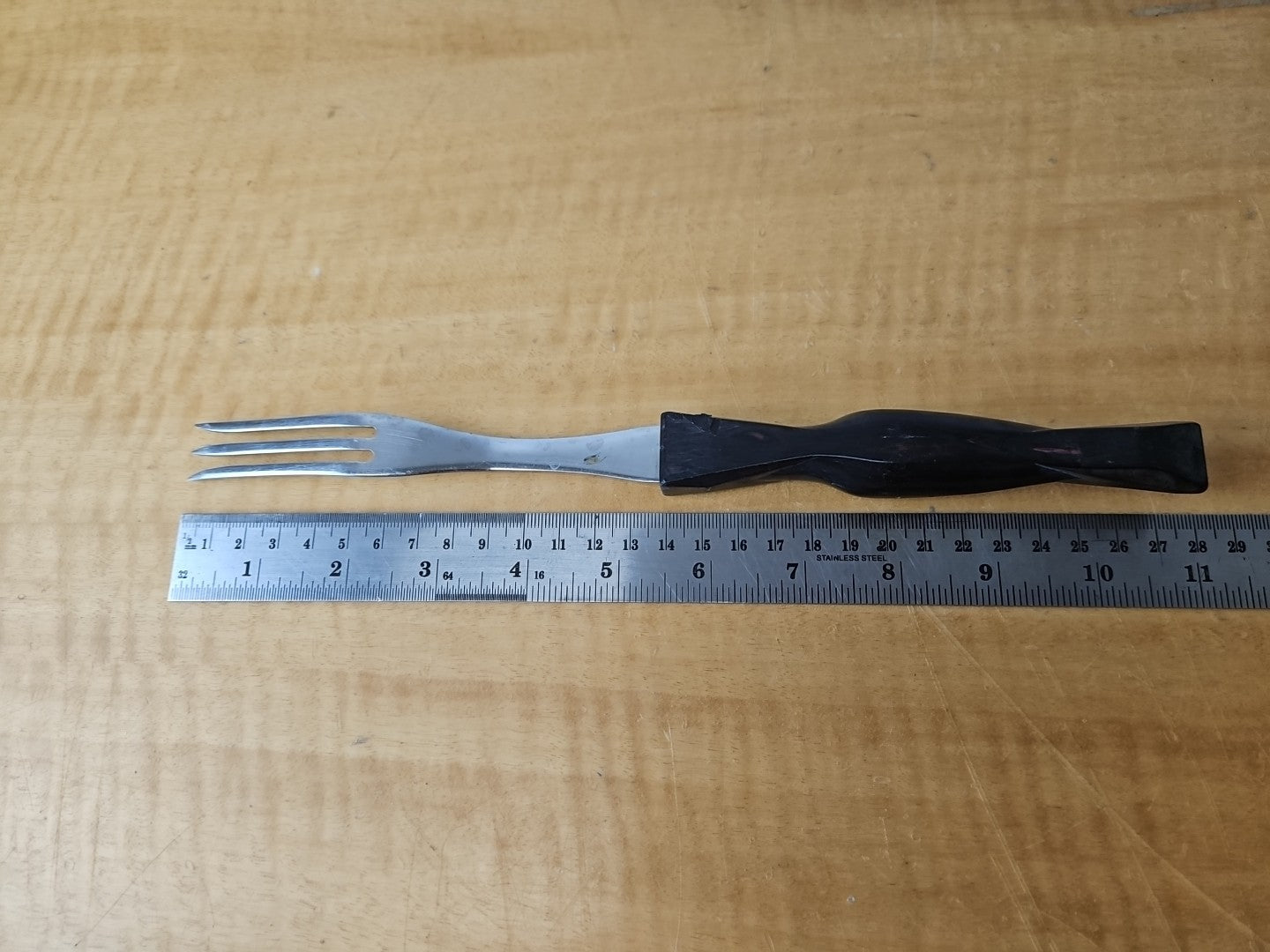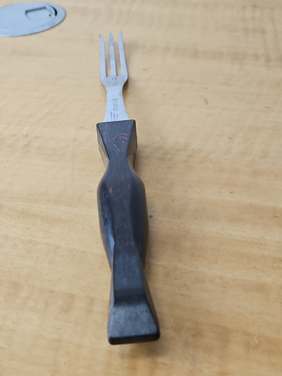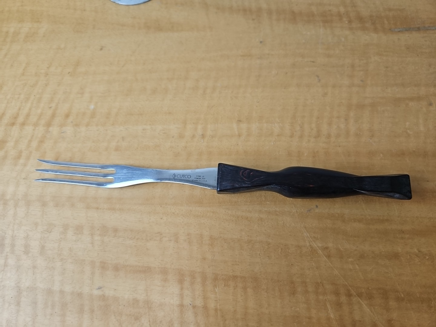 Vintage Cutco 1726 Turning 3 Prong Fork Dark Brown Swirl Handle 11"